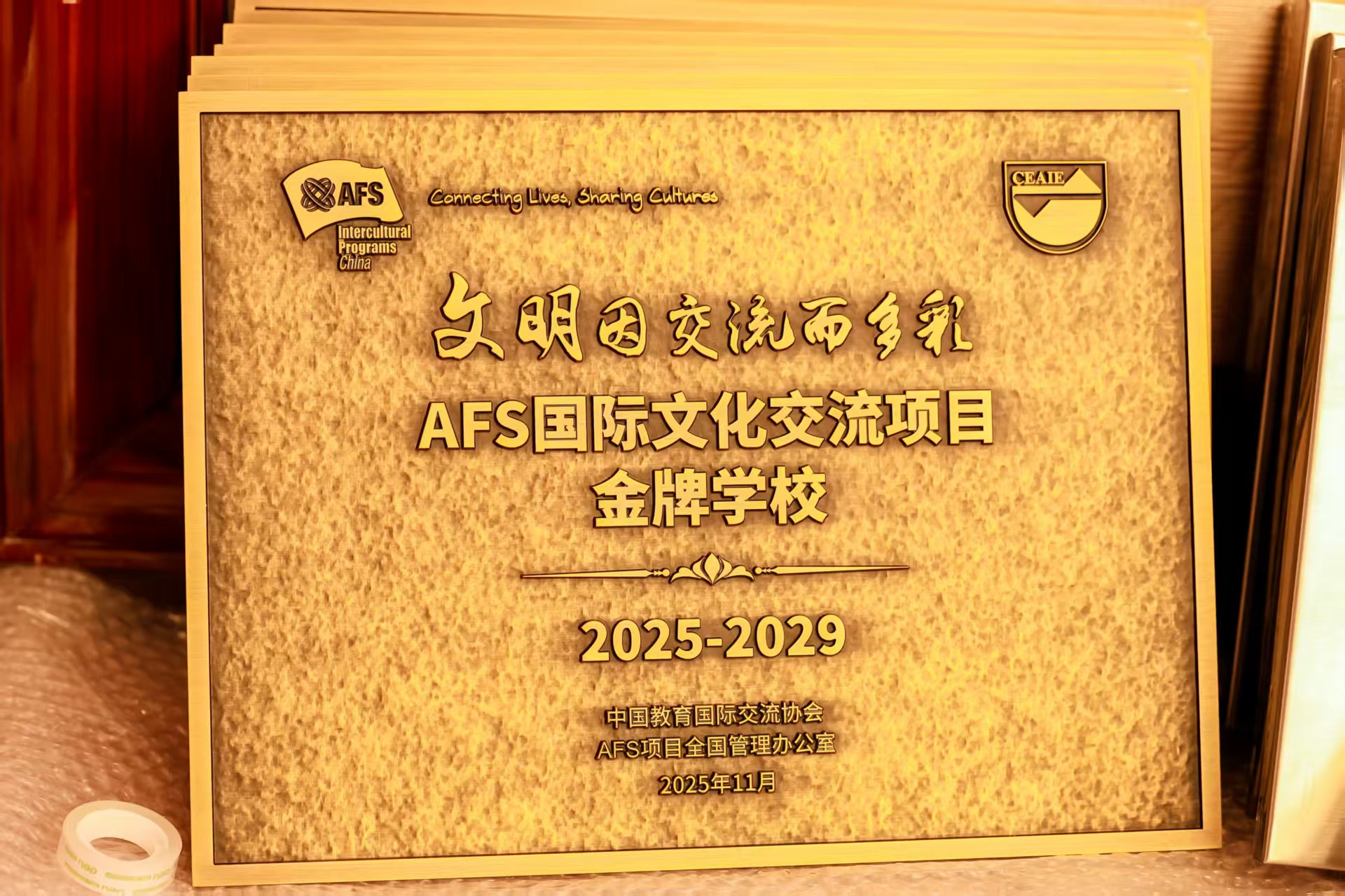“AFS项目金牌学校”为该项目最高荣誉称号,表彰在项目执行、管理及跨文化教育融合方面取得显著成效的学校。