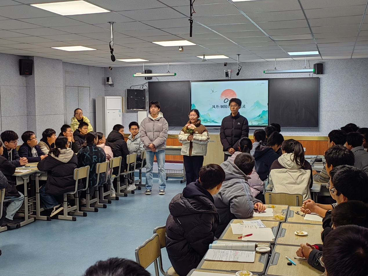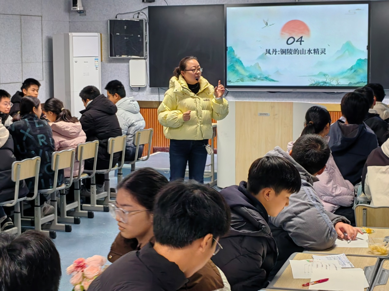 近日,铜陵市第三中学联合浙江奉化中学、江苏常州教育科学研究院附属中学,共同打造了一场跨省联动的德育主题班会。我校李莹老师以“寻忆铜都古韵,传承千年风华”为核心,通过沉浸式体验与创意互动,让铜陵四大地域文化跨越地域界限,在三校学子心中播下文化传承的种子。