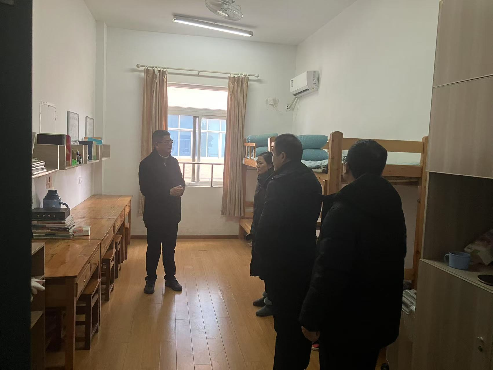 在检查过程中,首先重点检查教学楼,仔细查看教室门窗是否完好、桌椅是否稳固、照明设备能否正常运行、电器线路有无老化破损等情况,不放过任何一个细节,全力保障学生的学习环境安全舒适。
