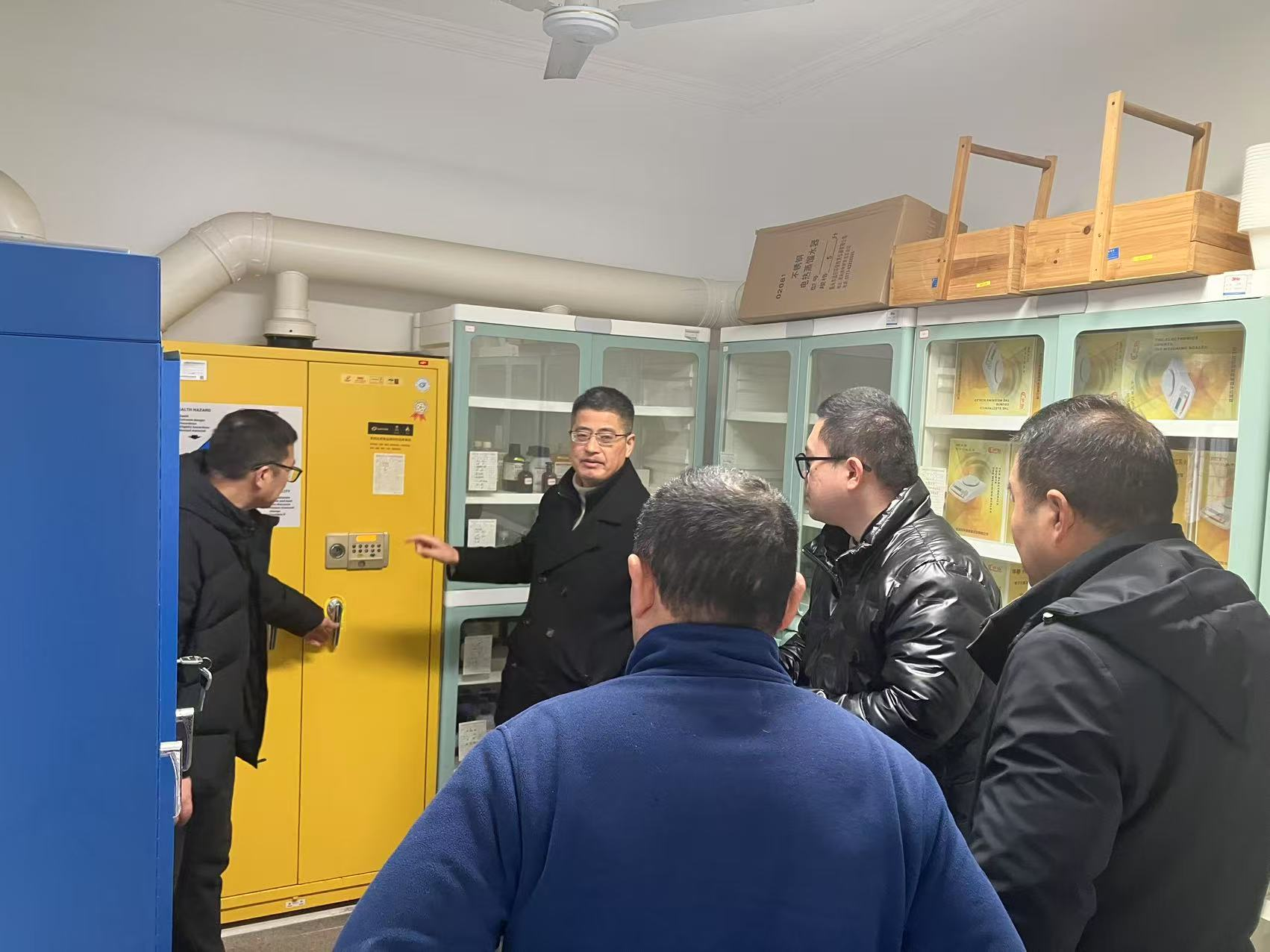 检查组对实验室的危险化学品存储与管理进行了严格检查,确保所有危险化学品均按照规范存放,并有明确的标志和专业的管理人员。