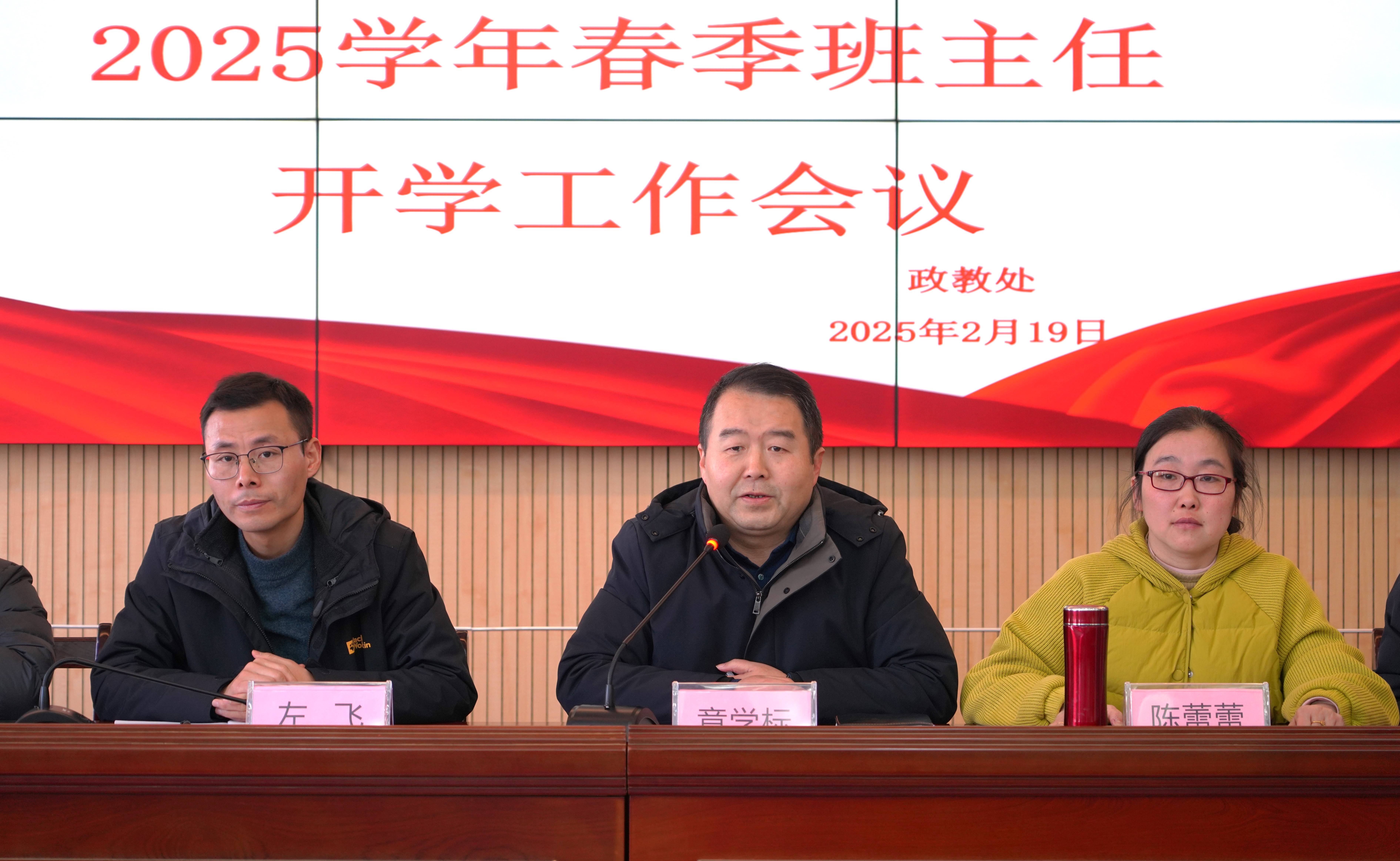 新春伊始万象新,德育深耕正当时,为统筹推进新学期德育工作,部署新学期班级管理创新路径与德育实践方案,强化班级管理效能,我校于2025年2月19日召开春季班主任工作会议。校党委委员、副校长章学标,教务处副主任左飞,政教处副主任陈蕾蕾,各年级部德育部长及全体班主任齐聚一堂。会议由政教处洪光耀老师主持。