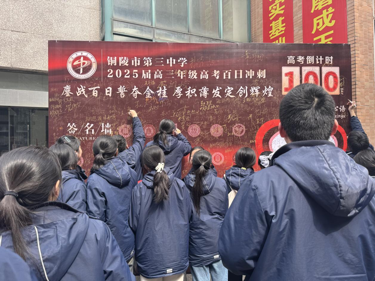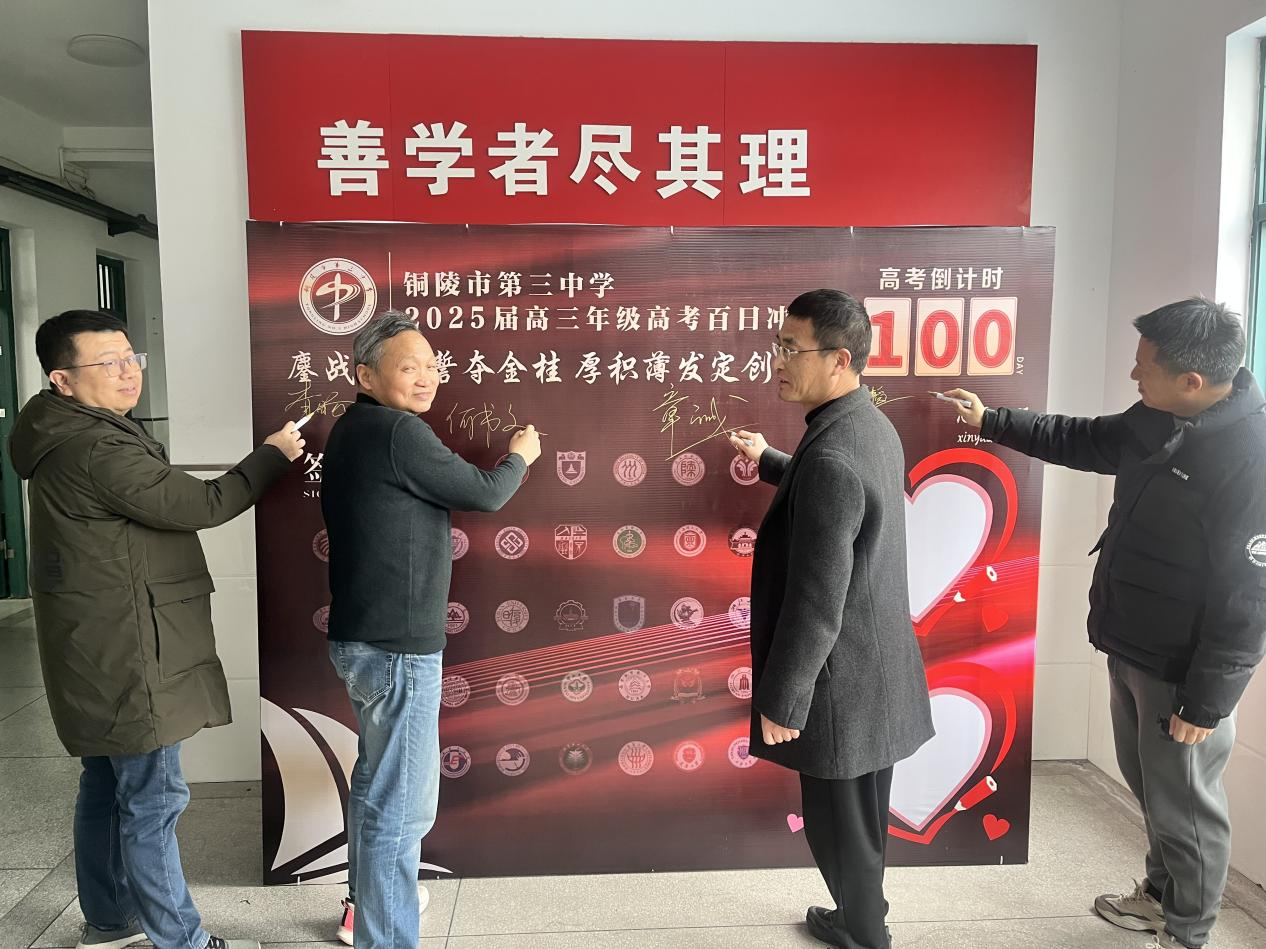 百日是冲刺的节点,更是蜕变的起点。学校将持续优化复习策略,关注学生个性化需求,以科学备考筑基,以人文关怀护航,助力学子梦想腾飞。战鼓催征马蹄疾,砥砺奋进正当时。相信2025届高三师生必将以今日之誓言为炬,在百日的赛道上披荆斩棘,书写属于铜陵三中的六月华章,为建校六十周年献礼!