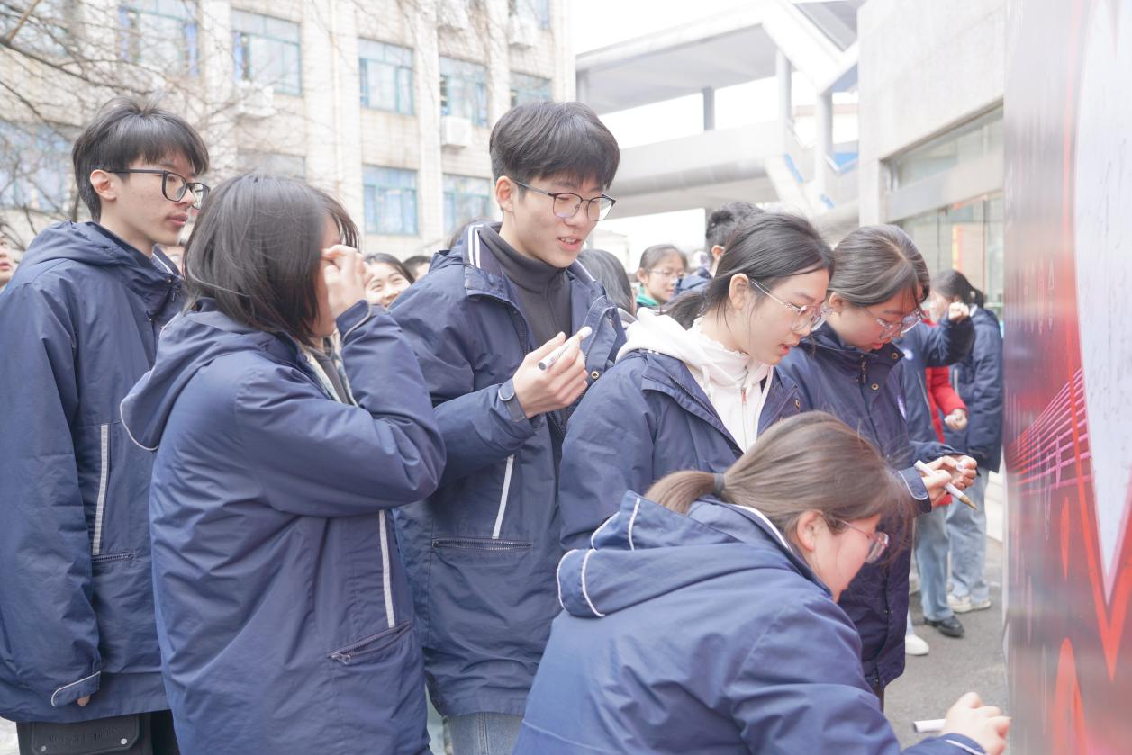 签名活动在启微楼下和见微楼三楼举行,师生在“百日冲刺”倒计时签名墙上郑重签名,一笔一画书写决心,一字一句镌刻信念。