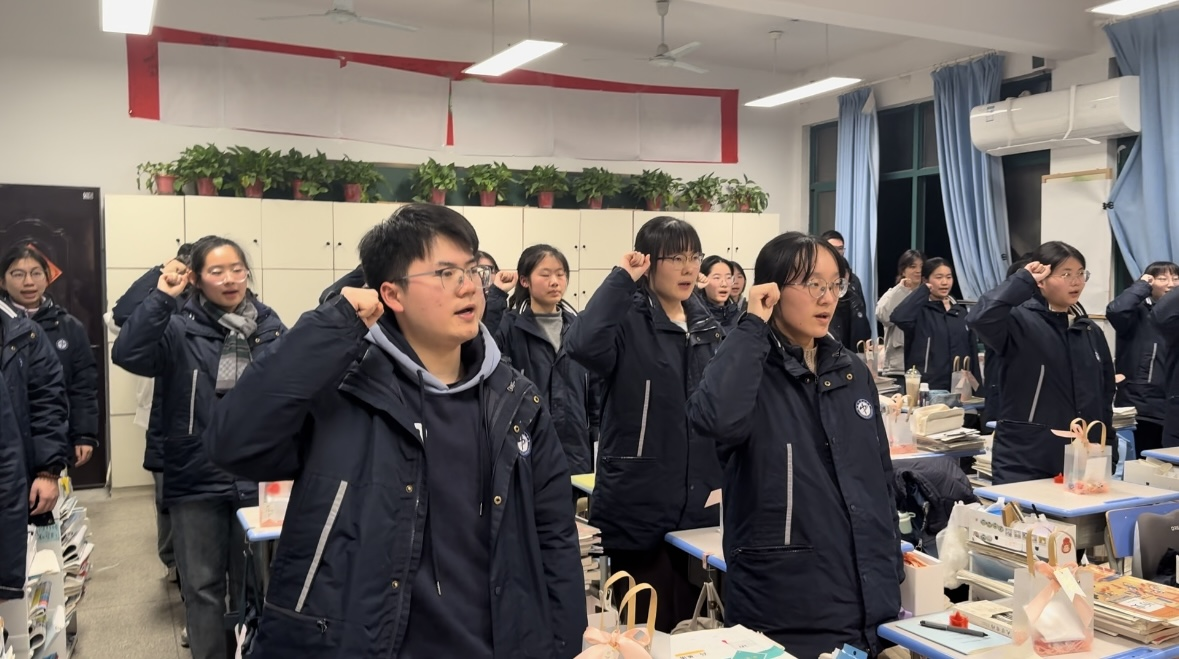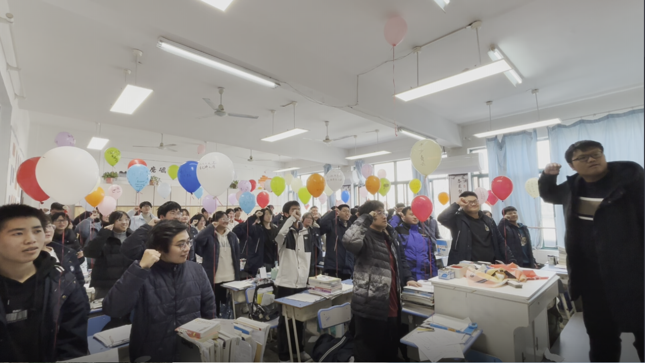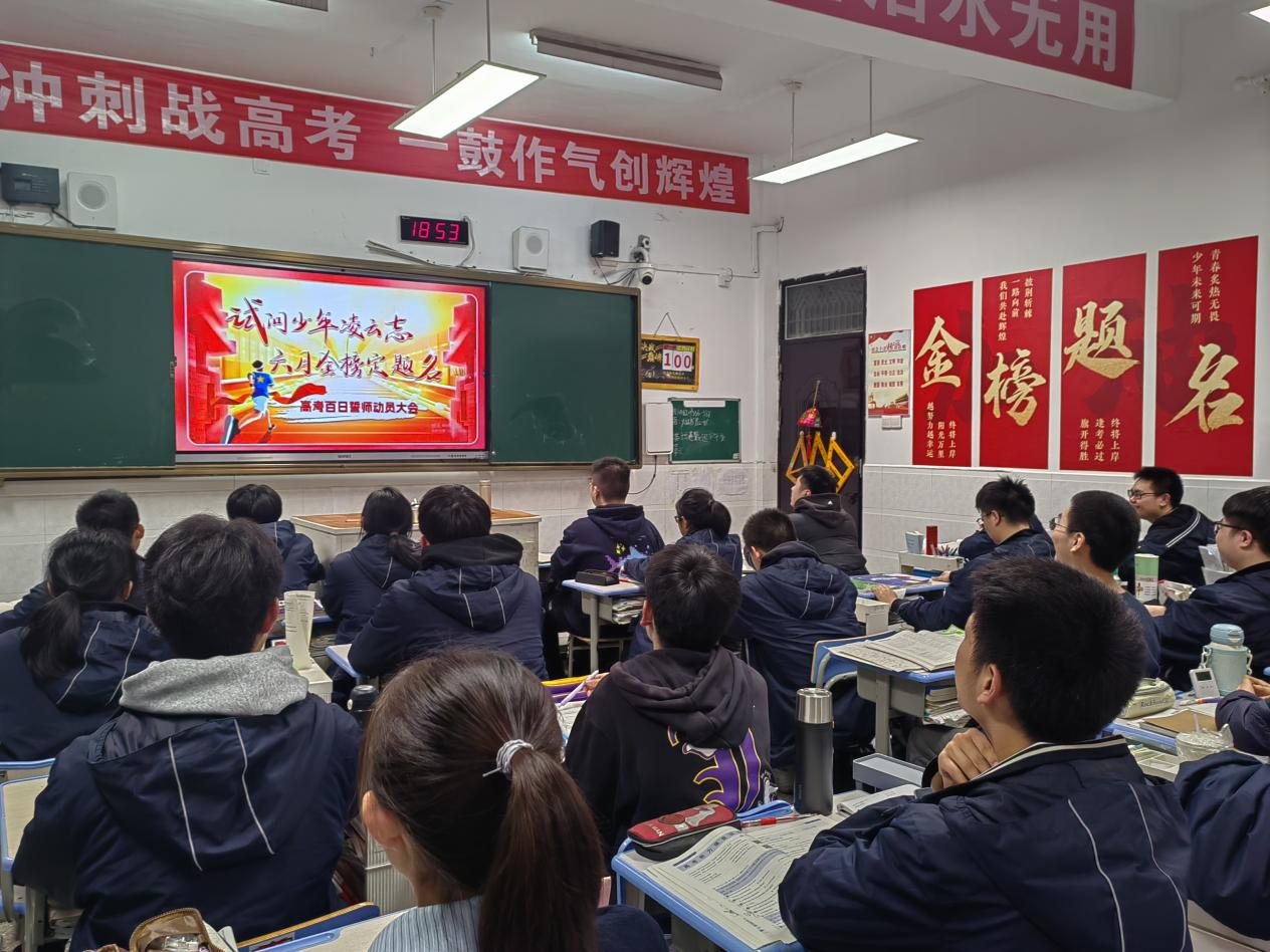 各班级结合学生需求,精心设计百日倒计时活动。组织开展“百日冲刺”主题班会课,邀请班级科任教师为学子加油打气;书写心愿,放飞梦想;徒步行走,磨砺意志。教室内外,励志标语高悬,战鼓声声回荡,各班学子高举右拳,以班级为单位庄严宣誓:“百日磨剑,今朝试锋!拼搏到底,我必成功!”铿锵誓言如春雷激荡,彰显出迎战高考的坚定信心。