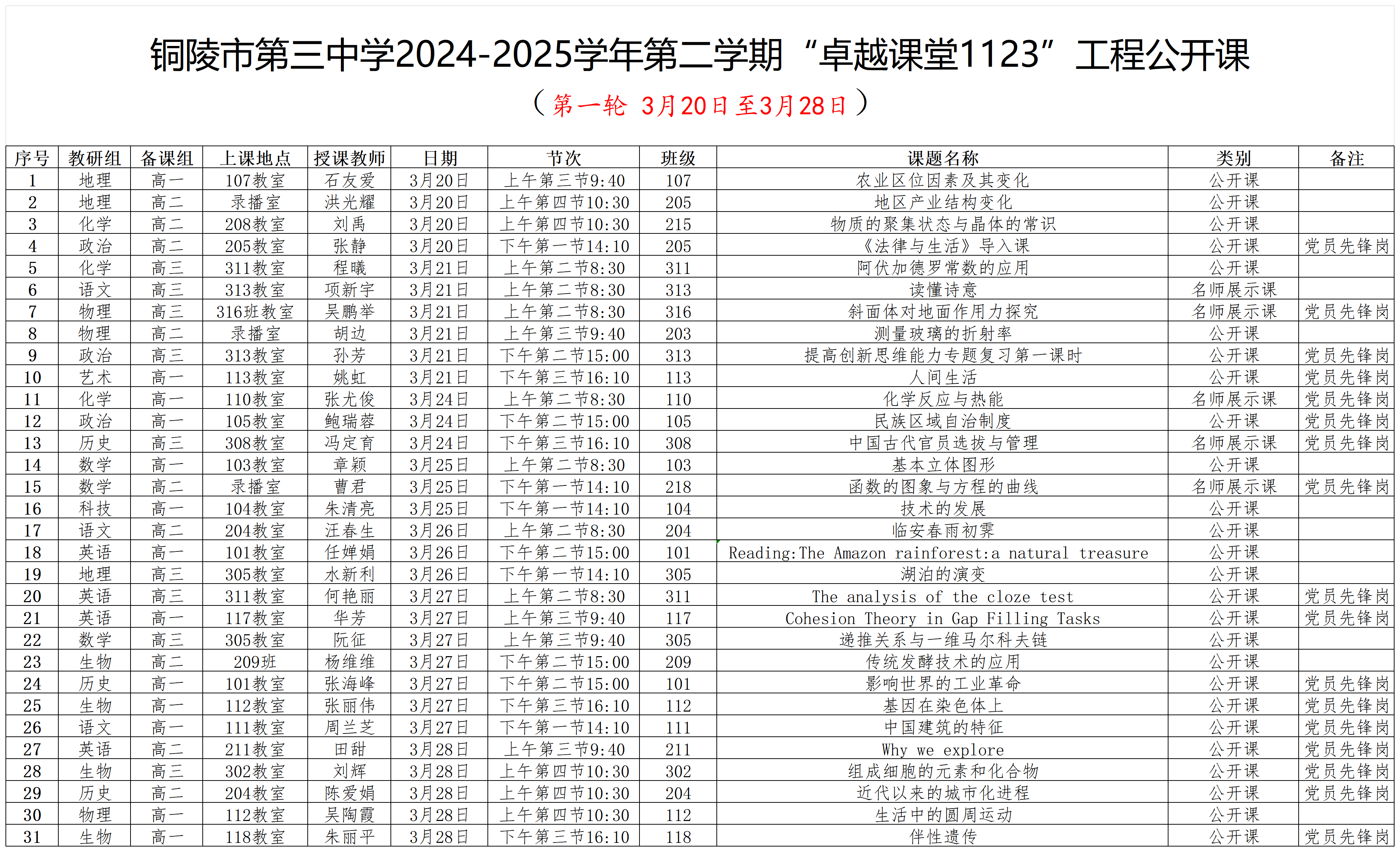 向全市开放!铜陵市第三中学2024-2025学年第二学期“卓越课堂1123”工程第一轮公开课来啦!