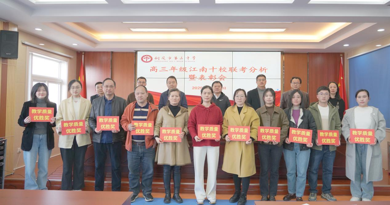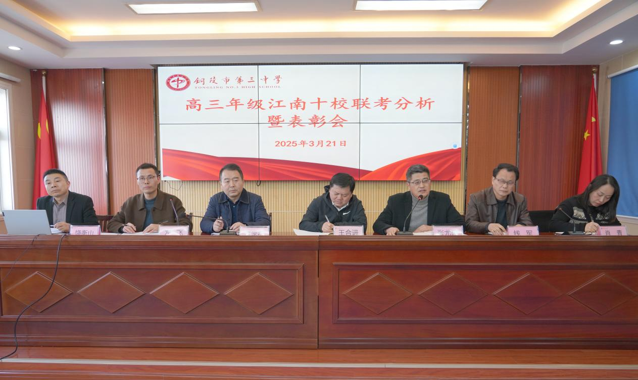 为科学总结一轮复习成效,系统部署二轮复习工作,3 月 21 日下午,高三级部召开 "江南十校" 联考分析会暨二轮复习培训。校党委书记王合进,校党委副书记、校长张尤俊,校党委委员、副校长章学标,校党委委员、教务处主任钱军,级部主任左飞,教学部长肖青,德育部长饶衡山及全体高三教师出席会议。会议由左飞主持。