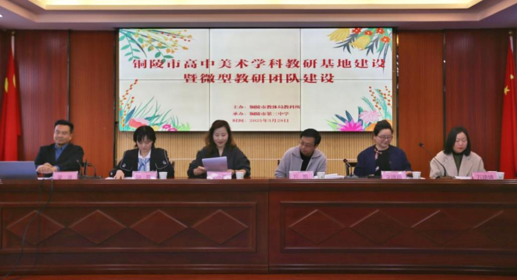 为全面推进新一轮基础教育课程改革,建设高素质、专业化、创新型美术教师团队,3月28日上午,铜陵市高中美术学科教研基地建设暨微型教研团队建设活动在铜陵市第三中学躬行楼五楼党员活动室成功举办。各校美术教师齐聚一堂,通过“基地建设+微型团队”双轮驱动模式,探索美术学科教研的创新路径,共研美术教育创新发展之路,本次活动由义安区美术教研员李小霞主持。