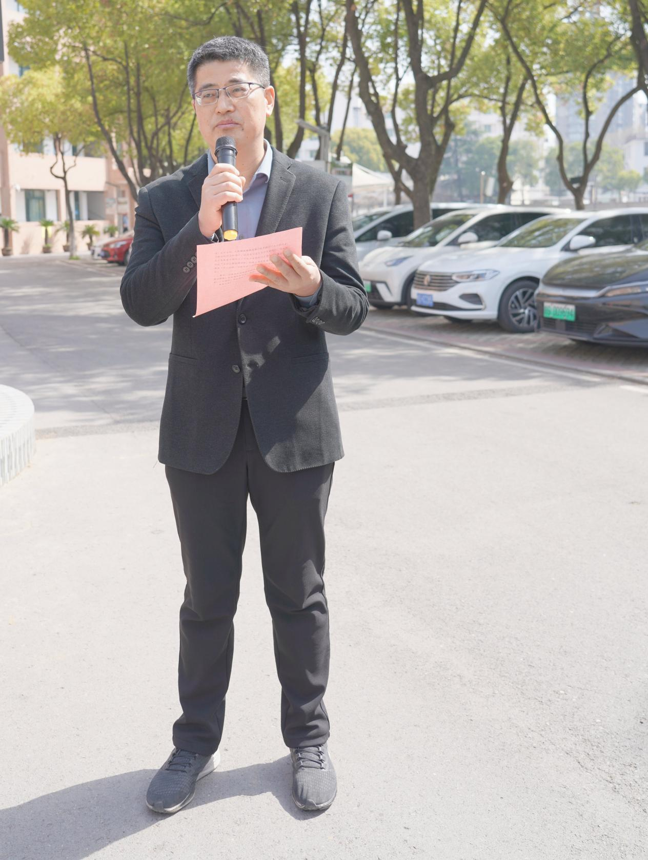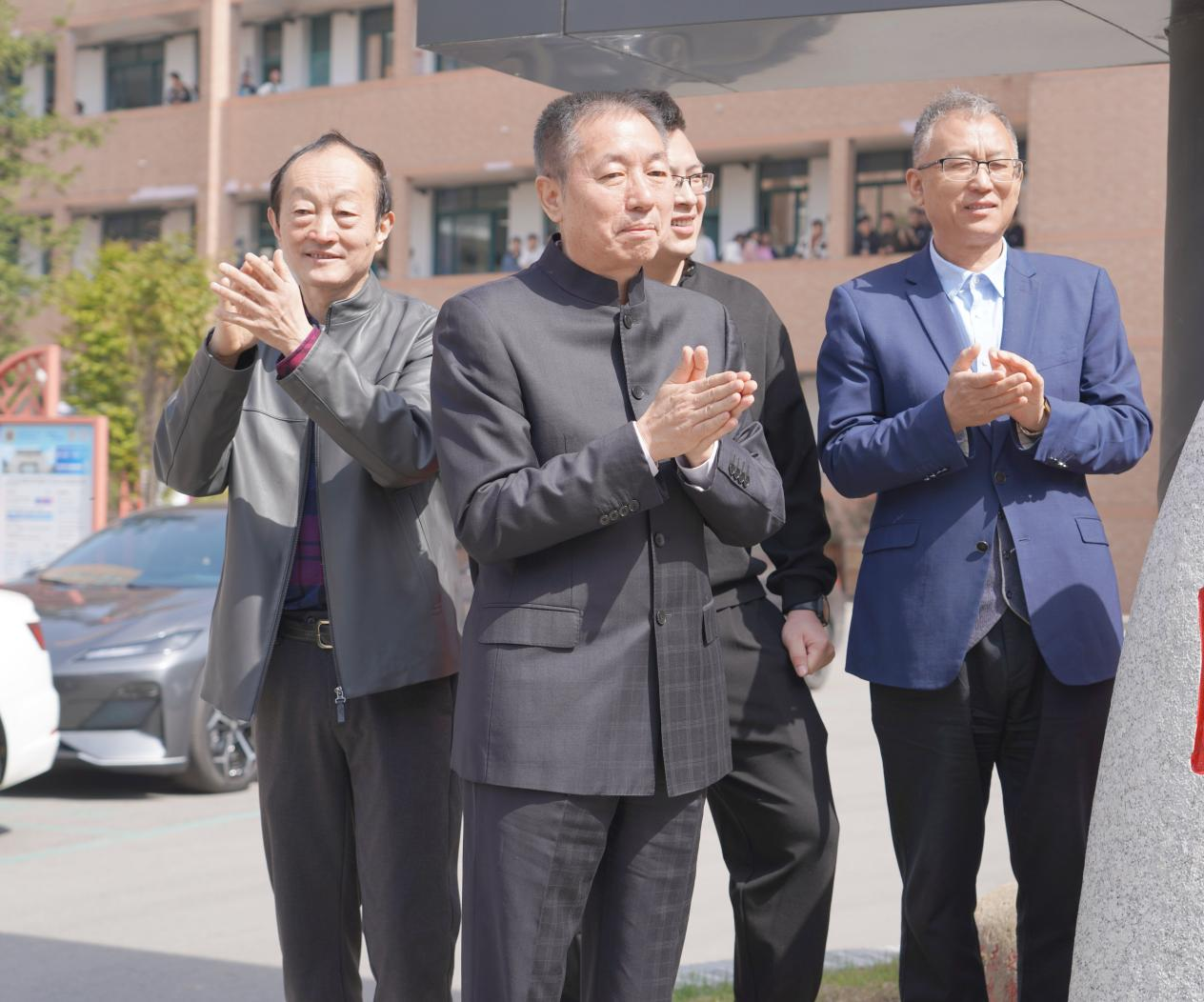 党委副书记、校长张尤俊致欢迎辞,他表达了对校友捐赠的感谢,简要回顾了学校60年的发展历程和取得的成绩,并阐述了校庆石的深刻意义与重要作用。他指出,校庆石的落成,不仅是对学校历史的铭记,更是对未来的展望。学校将在“办令人尊敬的学校,创高品质示范高中”道路上始终秉承“开山启路,百炼争新”办学精神,不忘初心,继续前进。