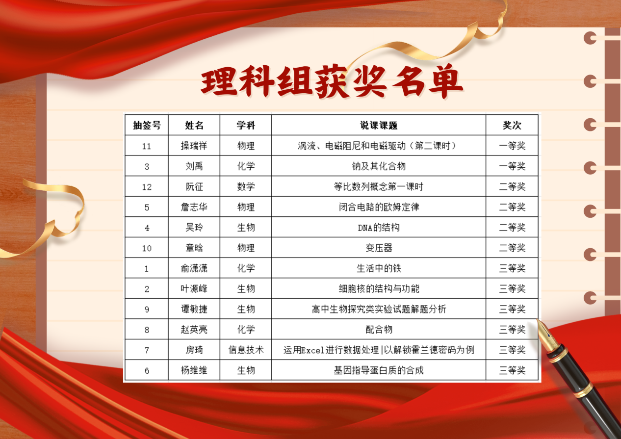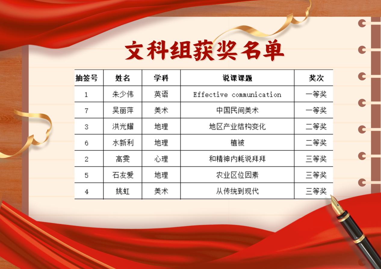本次大赛设立文、理科组一、二、三等奖,获奖情况如下: