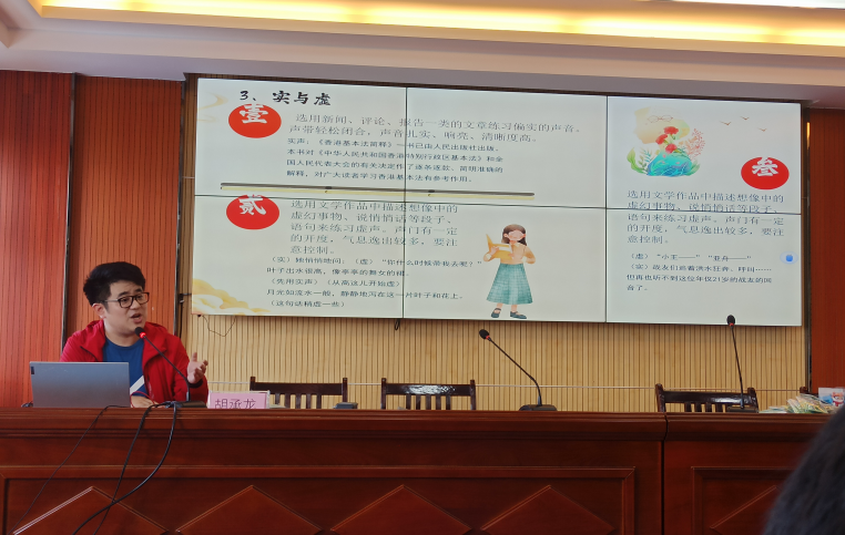 “声音不仅是传递信息的工具,更是表达情感、展现思想的艺术载体.”课程伊始,胡承龙老师便开宗明义,点明了声音表达的核心价值。作为全国十佳青年演讲家,并曾辅导三十多位学生荣获全国青少年爱国主义读书教育活动一等奖的资深导师,胡老师凭借深厚的专业素养和丰富的教学经验,引领学生们探寻声音的无限可能。