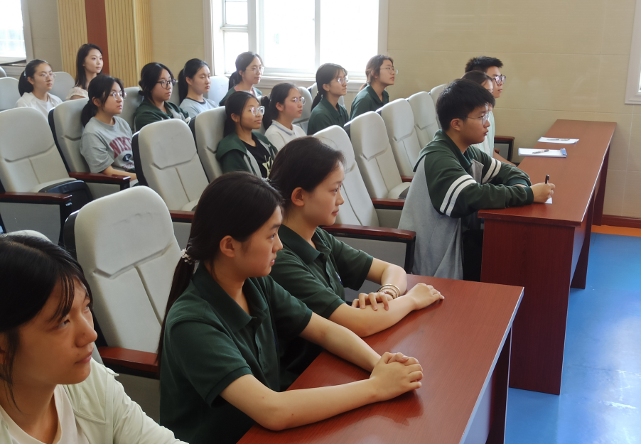 课堂上,胡老师深入浅出,以对比训练法为核心,从气息控制、发声技巧、音调转换、语速节奏到情感投入、肢体协同,进行了全方位指导。他通过实例示范和互动练习,引导学生们体会声音的高低、强弱、快慢、虚实变化如何精准传递文字背后的情感与力量。“诵读爱国篇章时,你们的声音应成为连接文字精神与听众心灵的桥梁,”胡老师强调,“要让每一个字都饱含深情,每一声调都激荡人心。”同学们全神贯注,现场气氛热烈,不少同学表示这堂课刷新了他们对演讲朗诵的认知。