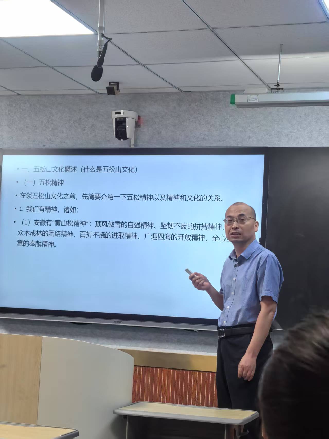 随后,乔红胜老师作题为《五松山文化融入语文教育的实践与思考》的专题讲座。他从五松山文化的内涵与现状、课题研究优势、实践探索路径及未来发展方向四个方面,深入剖析了五松山文化与语文课程的融合策略。乔老师指出,市三中有着丰富的五松山校园文化,具有得天独厚的资源优势,语文课程应主动承担文化传承使命,通过本土文化资源的挖掘与运用,提升学生的学科素养,涵养乡土情怀。他强调,当前五松山文化研究仍存在一定的局限性,未来需进一步拓宽研究视野,创新教学形式,让这一古老文化在新时代焕发新的生机。