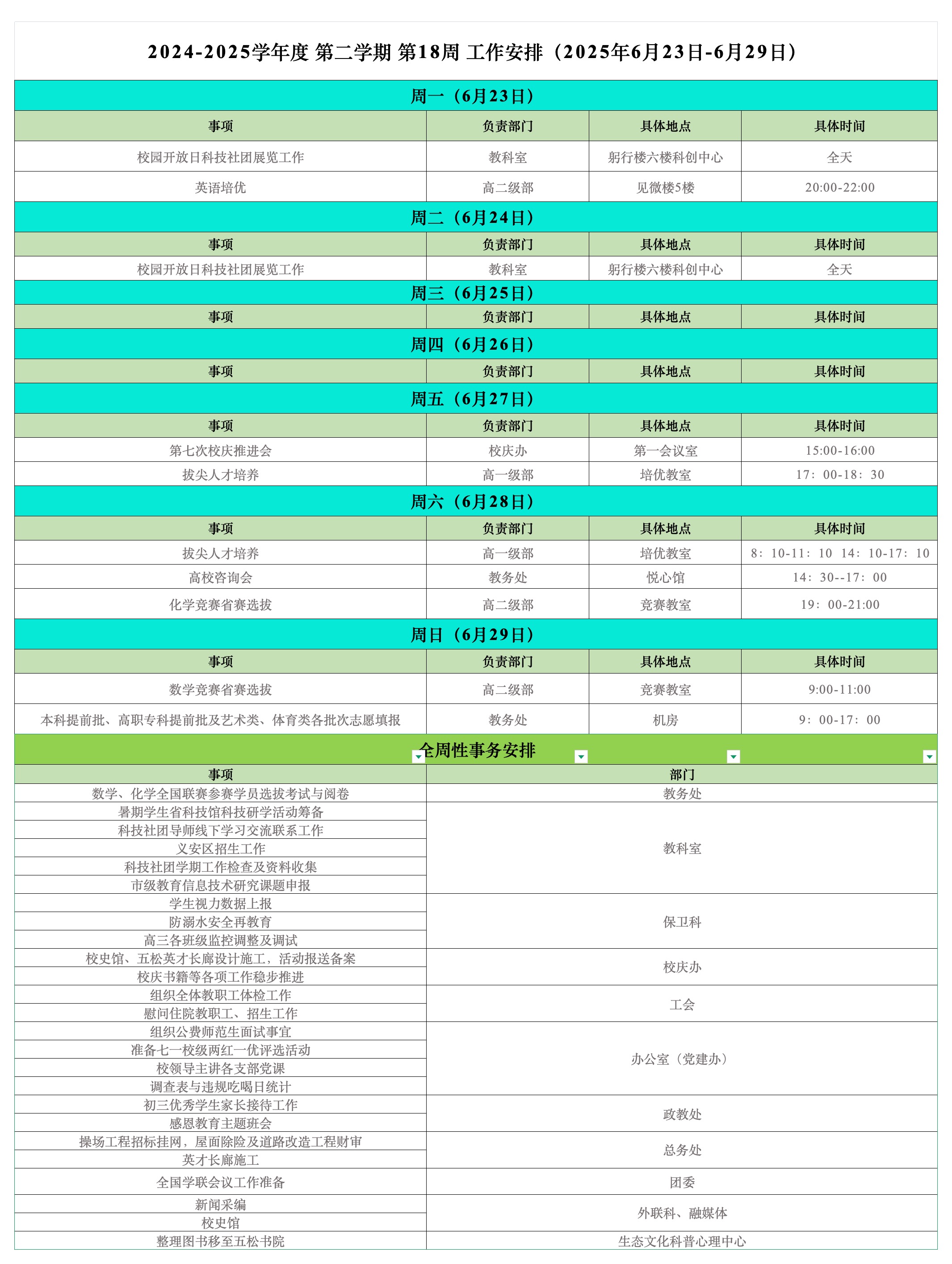 铜陵三中2025年春季学期周工作安排(2025年6月23日-6月29日)