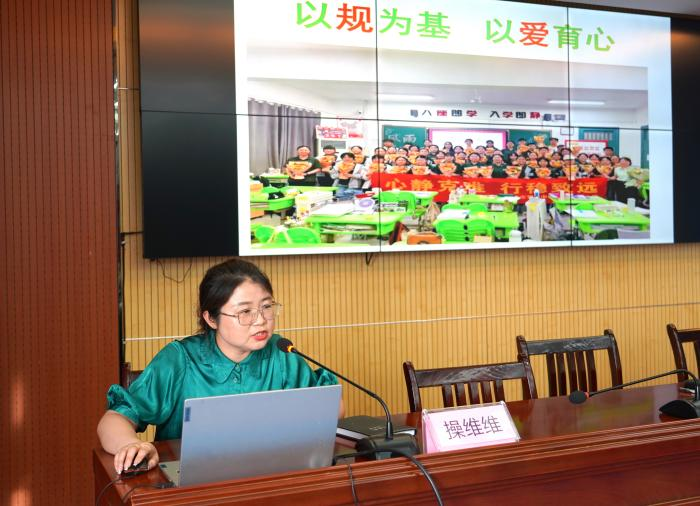 德育经验分享环节中,操维维老师做了题为《以规为基 以爱育心》的精彩的报告,她创新的“全员班长制”让52名学生均担管理职责,依托《班级日志》与《积分细则》激发内生责任感;“以爱育心”理念下的“感恩自己”“夸夸墙”等情感活动,将班级营造成长暖房;在探寻自然中,向天地借力,拓展了班级教育的深度与广度。这场源自一线的经验分享,为班主任群体提供了可复制的育人范式。