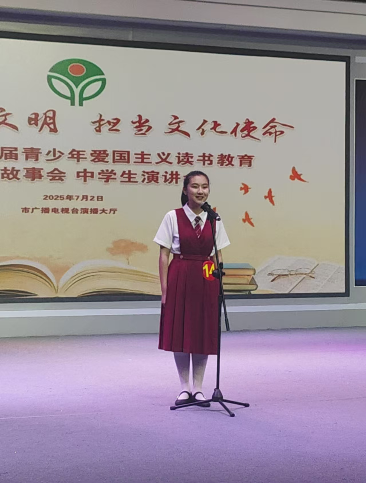 全国青少年爱国主义读书教育活动经中宣部批准、由全国妇联牵头,从1993年开始举办,至今已吸引超过 10 亿人次青少年参与其中。铜陵三中始终以爱国主义教育为立德树人的核心内容,以文化传承为纽带,让爱国情怀在学子心中生根发芽枝繁叶茂。从课堂上的思想浸润到赛场上的激昂表达,从校内的文化活动到校外的实践探索,学校将爱国精神融入到教育的每个环节,培育出一批又一批心怀家国,志存高远的时代新人。两位选手怀揣着三中学子的灼灼风采,即将奔赴省赛的广阔天地,愿她们如破云之鹰,以文为翼,以声为风,在更高的舞台书写辉煌。