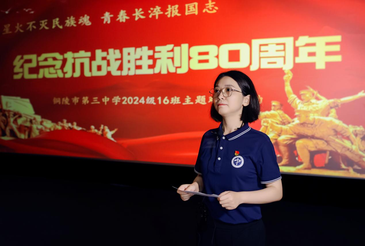 今年7月,习近平总书记考察山西阳泉百团大战纪念馆时强调,要讲好抗战故事,把伟大的抗战精神一代代传下去。为使同学们详细了解中国人民反抗日本军国主义侵华的正义战争,在活动之前,216班团支部开展了“查阅红色文献,讲述红色故事”的史料搜集活动,引导学生向历史求证,树立正确的历史观,理解伟大的抗战精神的深刻内涵。观影后,班主任杨奇老师这段话发人深省。当《民族的丰碑》诗朗诵音乐响起,同学们动情朗诵,声声铿锵,仿佛历史的“警世恒言”在心中回响。伟大的抗战精神如巍然矗立的精神丰碑,照亮了中华民族淬砺血性、度尽劫难、书写荣光的奋斗征程。