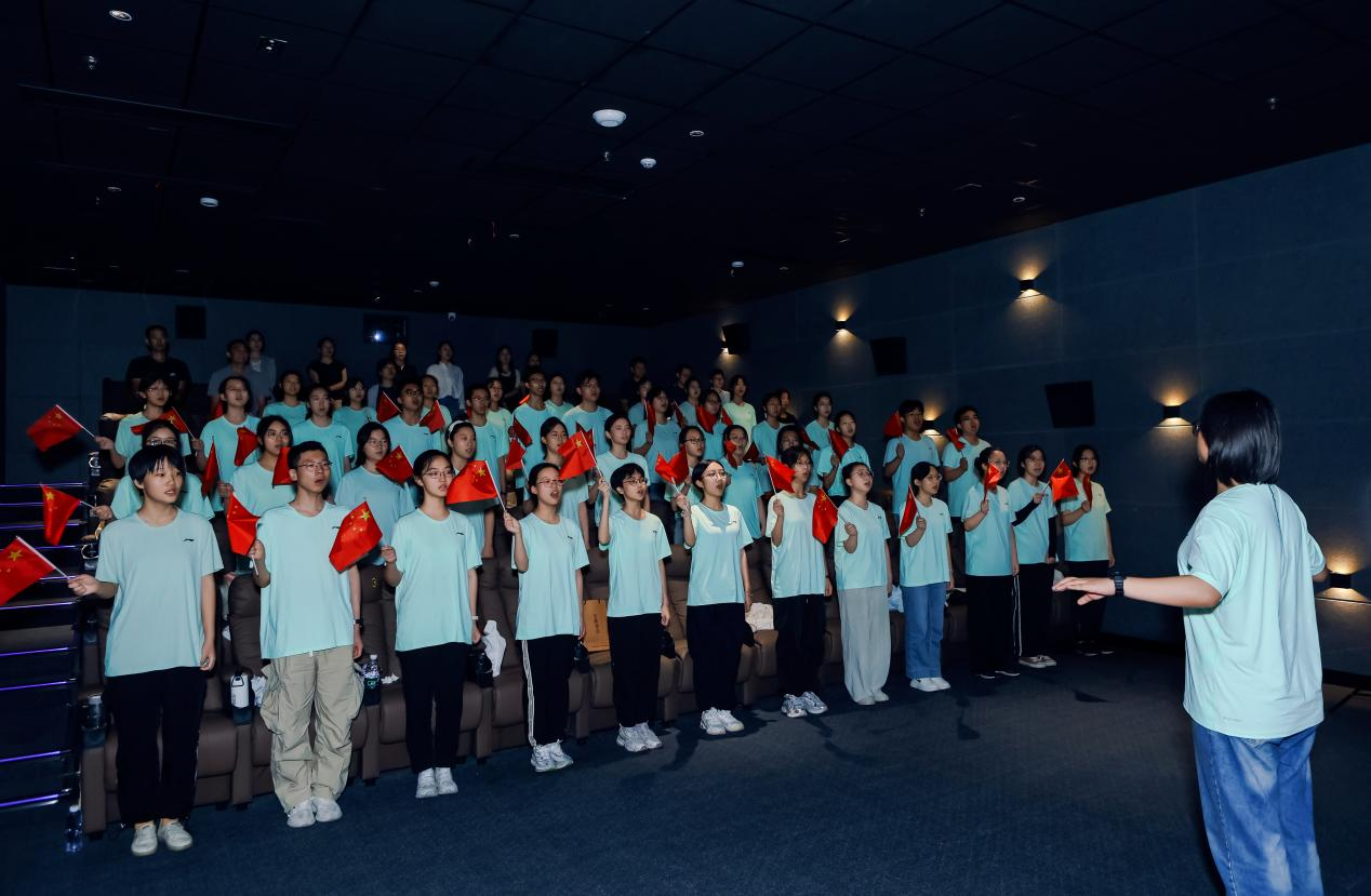 当《民族的丰碑》最后一个音符落下,历史的回响并未沉寂。影片中阿昌冒死保存的底片,传递了历史的真相;暗房里用鲜血浸染的不屈,化作了燎原的星火。此时,五星红旗在电影厅内飘扬,全体同学共同高唱《歌唱祖国》,歌声嘹亮,饱含着对祖国的热爱与奋进的决心。