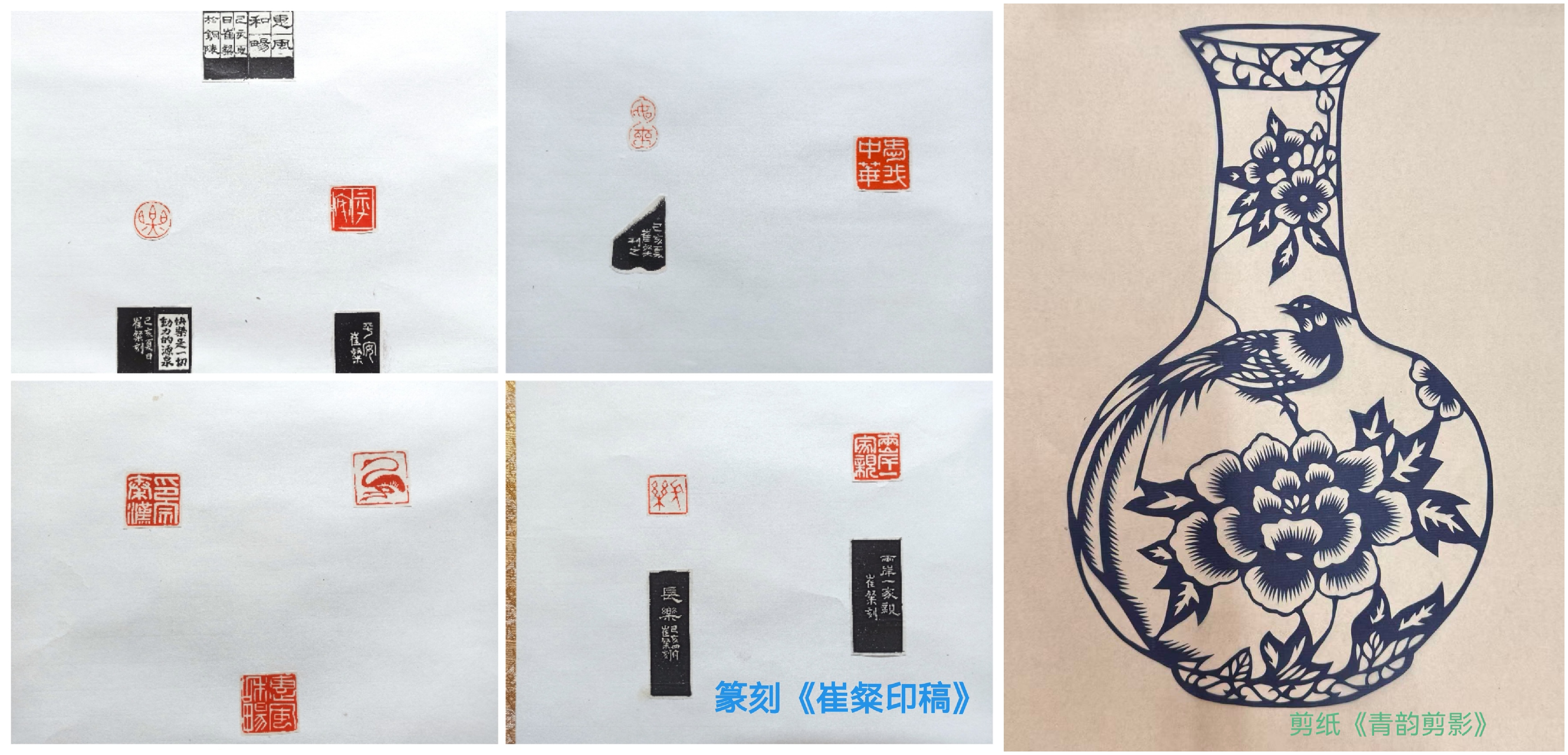 剪纸《青韵剪影》,作者:周董洁,获民间美术类市级一等奖,市级艺术作品类优秀创作奖,指导教师:吴丽萍。