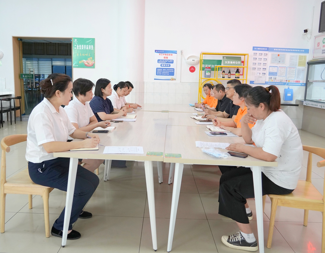 在随后的集中会议中,食堂经营方就近期运营情况、食品安全措施落实及面临的困难作了汇报,总务处则通报日常监管中发现的问题并提出改进建议。