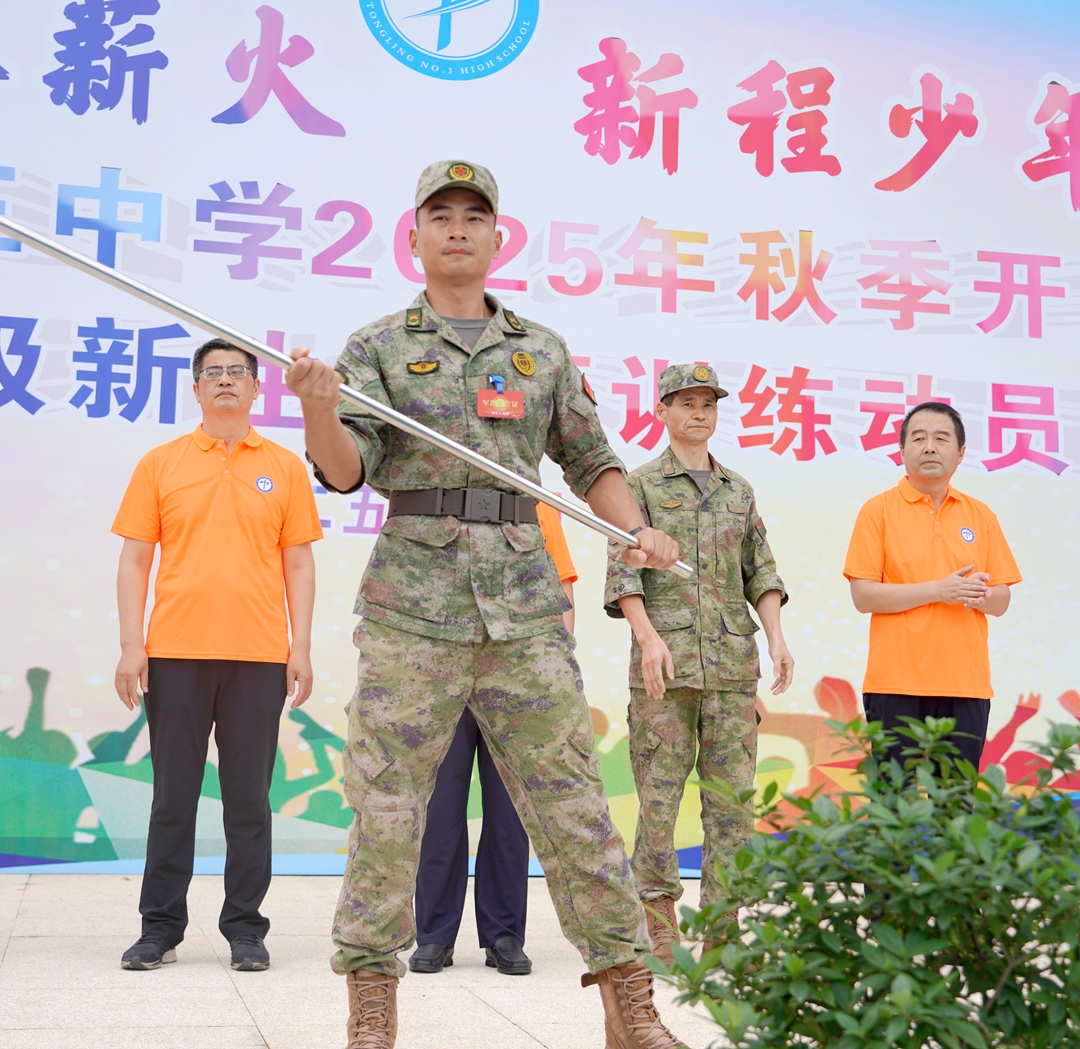 誓言铿锵,热血启航。9月1日下午,铜陵市第三中学举行2025级高一新生军训动员大会,全体新生们精神抖擞,整装待发自此奔赴人生新征程。郊区人武部副部长陆安,校领导王合进、张尤俊、章学标、钱军、王俊朝、梁波,高一级部主任左飞,德育部长饶衡山等领导出席动员大会。保卫科科长凌兴民主持,为期7天的军事训练在冉冉升起的五星红旗和雄壮的国歌声中正式拉开帷幕。