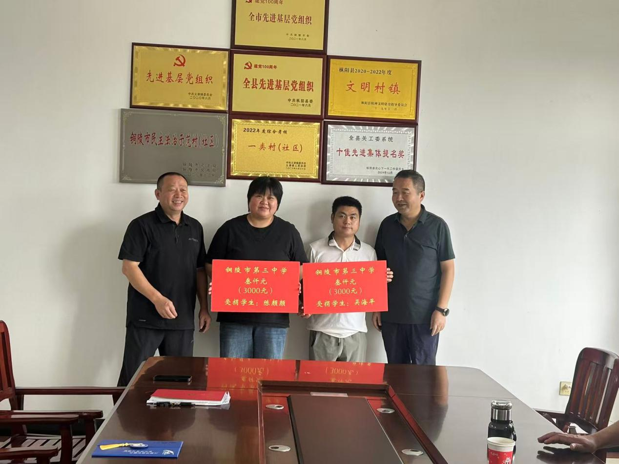 在义东村党群服务中心,校领导对今年两名考上大学的贫困家庭学生进行了每人3000元的资助。据了解,这两名学生今年分别以优异成绩考入高校,却因家庭经济困难面临就学压力。我校得知情况后,迅速响应,由校领导亲自将助学金送至学生家长手中,以实际行动助力乡村振兴和教育帮扶。