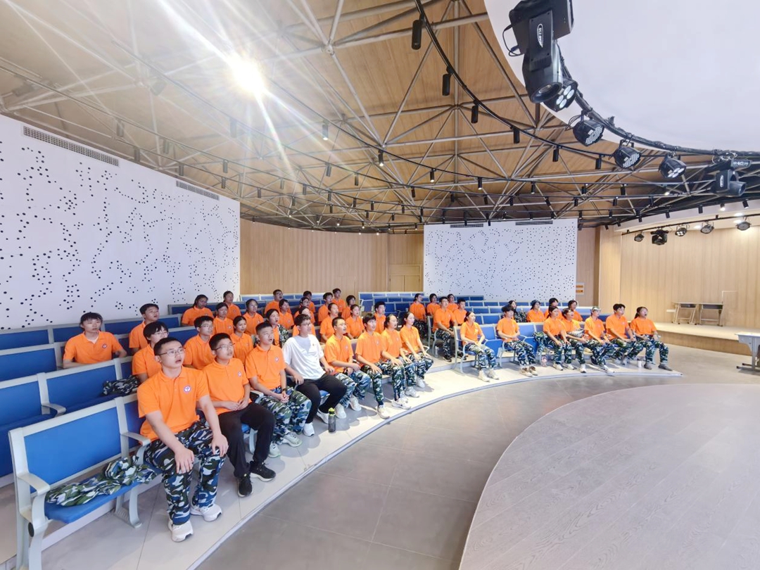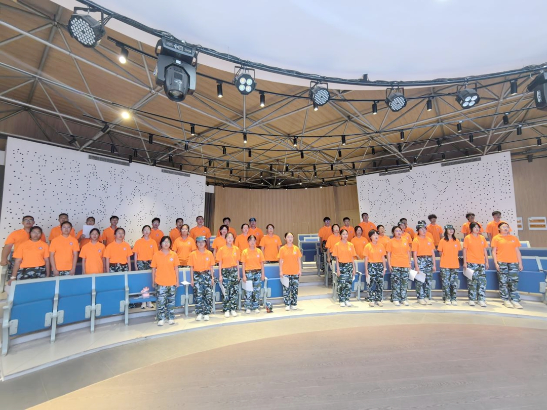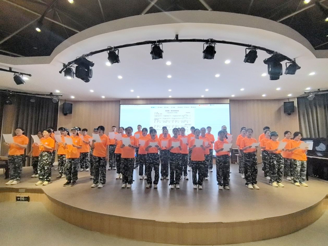 上午10:30训练结束后,由各班抽调人员临时组建的合唱团在演艺厅开始了激动人心的学唱校歌环节。“这是一方育人的土地,惠风化雨,桃李芬芳……”当悠扬的旋律响起,歌词中熟悉的意象瞬间拉近了新生与这座校园的心理距离,一种作为“三中人”的归属感和自豪感在歌声中油然而生。虽然上午的军训已虽带着一身疲惫,但当校歌的旋律响起时,疲惫仿佛被歌声融化,心底满是轻松与愉悦。