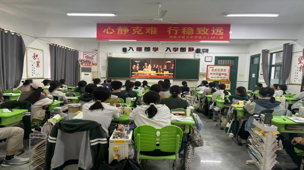 今天,是一个重要而光荣的日子。中国人民抗日战争暨世界反法西斯战争胜利80周年纪念日。上午9时,纪念大会在天安门广场隆重举行。中共中央总书记、国家主席、中央军委主席习近平发表重要讲话并检阅部队。铜陵三中师生以各种方式积极参与和关注这次纪念活动,共同铭记庄严而伟大的时刻。