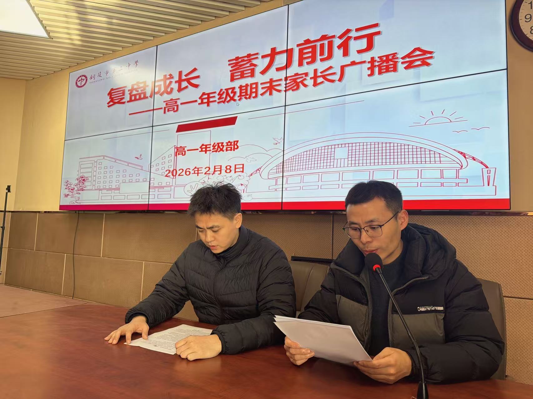 为进一步深化家校沟通、凝聚育人合力,全面总结本学期教育教学成果,科学指导学生寒假生活与学习规划,2月8日,铜陵市第三中学高一级部期末家长会在各班教室顺利举行。本次家长会采用“校园广播会+班级分班交流”双轨模式,既实现级部统筹部署,又聚焦班级精准沟通,为家校搭建起高效畅通的共育桥梁。