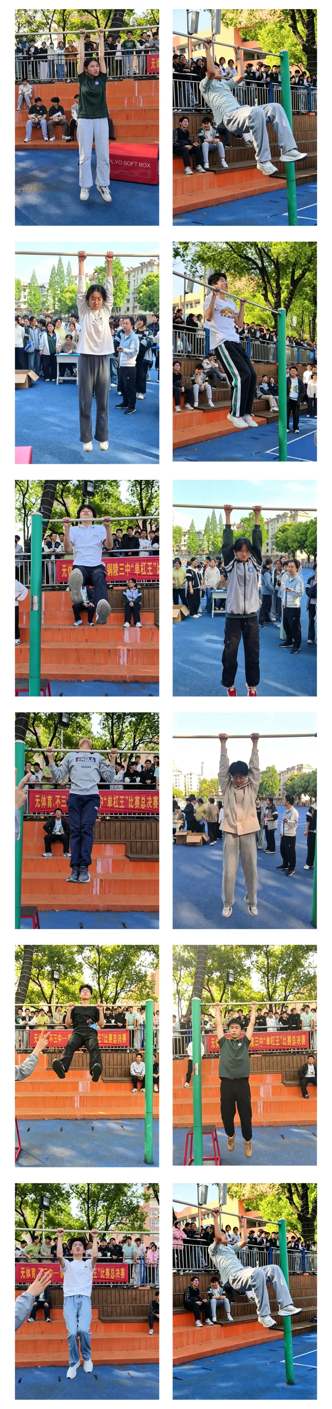 昨天下午,铜陵三中操场化身“肌肉与力量修罗场”,备受瞩目的“单杠王”争霸赛热血开战。没有花哨的技巧,只有实打实的引体向上和单杠悬垂。究竟谁能征服那根看似冰冷的单杠,登顶力量之巅?