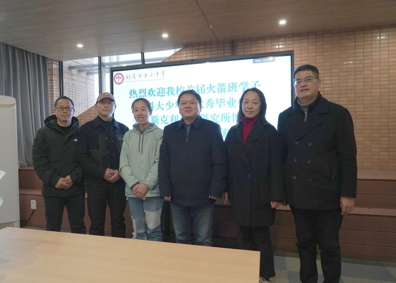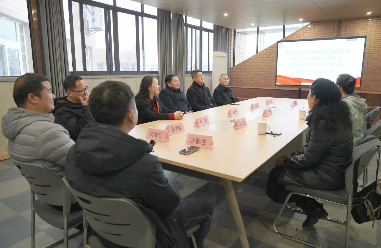 王合进代表学校热烈欢迎吴垠博士来访母校,仔细询问了吴垠博士所学专业以及未来发展规划,并指出学校即将迎来60周年校庆,希望她能够多回来看看,为母校和家乡发展出谋划策。张尤俊高度称赞了吴垠博士当年在校就读时的勤奋努力与积极进取的态度,并以优异的成绩成为首届火箭班考入中科大少年班的第一人,是学校当年最闪耀的“明星”。