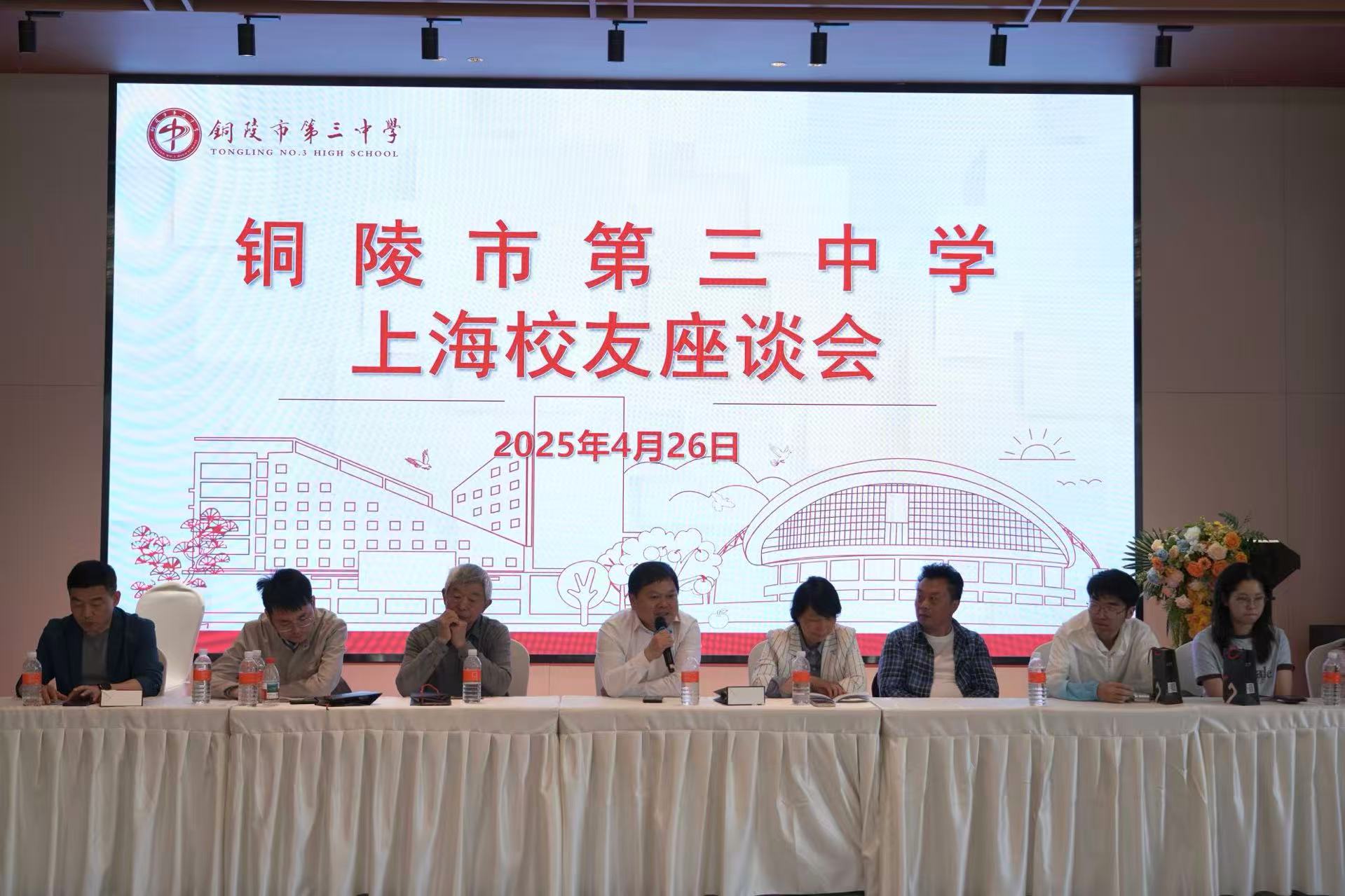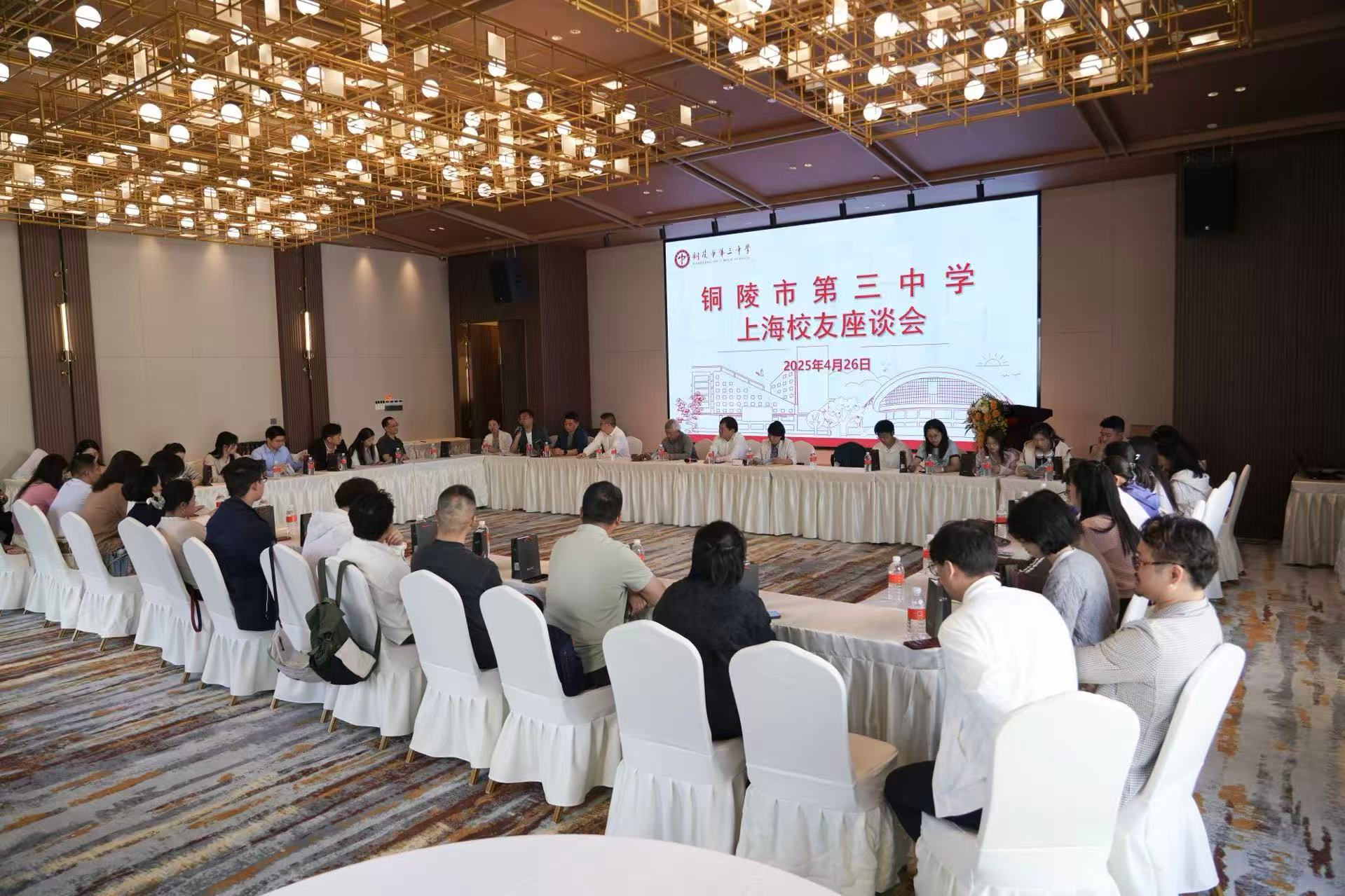 为增进校友感情、凝聚校友力量,4月26日,我校在上海召开上海校友联络处成立大会暨校友代表座谈会。市驻上海联络处胡江红,校党委书记王合进,原铜陵三中老校长胡志敏,上海市铜陵商会秘书长崔凯,相关处室负责人及在沪的三中校友近60余人参加了座谈会,座谈会由校党委委员、工会主席梁波主持。
