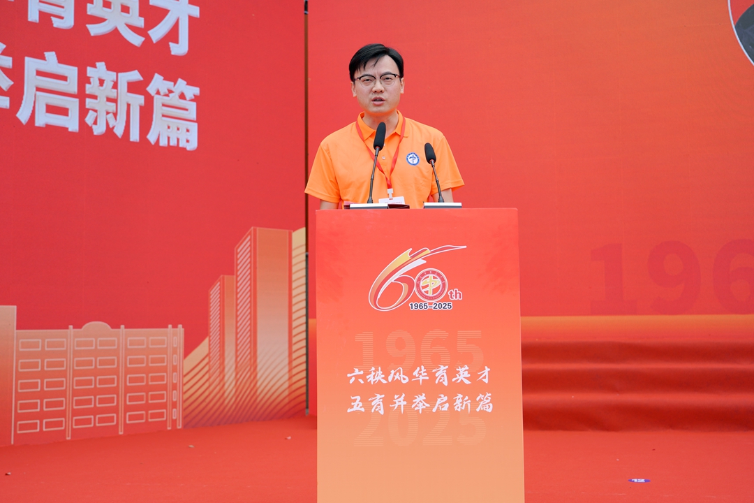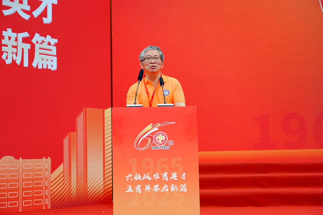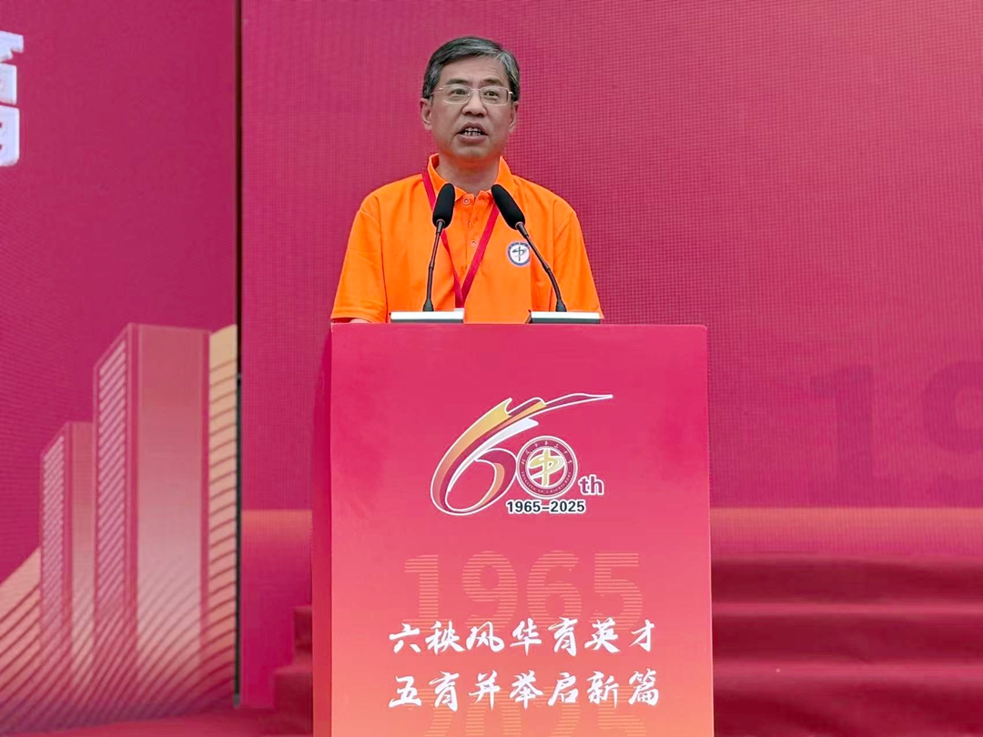 校党委副书记、校长张尤俊致辞。他全面回顾了学校自1965年建校以来,践行教育使命的60年发展历程,系统梳理了学校在教学改革、教师队伍建设、人才培养等方面取得的丰硕成果,深刻阐释了学校“开山启路,百炼争新”的三中精神。