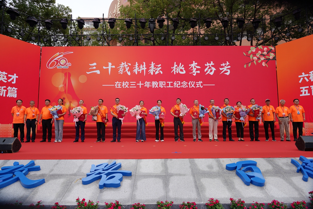 大会现场还举行了在校三十年教职工纪念仪式,与会领导向为学校发展倾注毕生心血的老教师们敬献鲜花,全场响起热烈掌声,向老教师们的无私奉献致以崇高敬意。