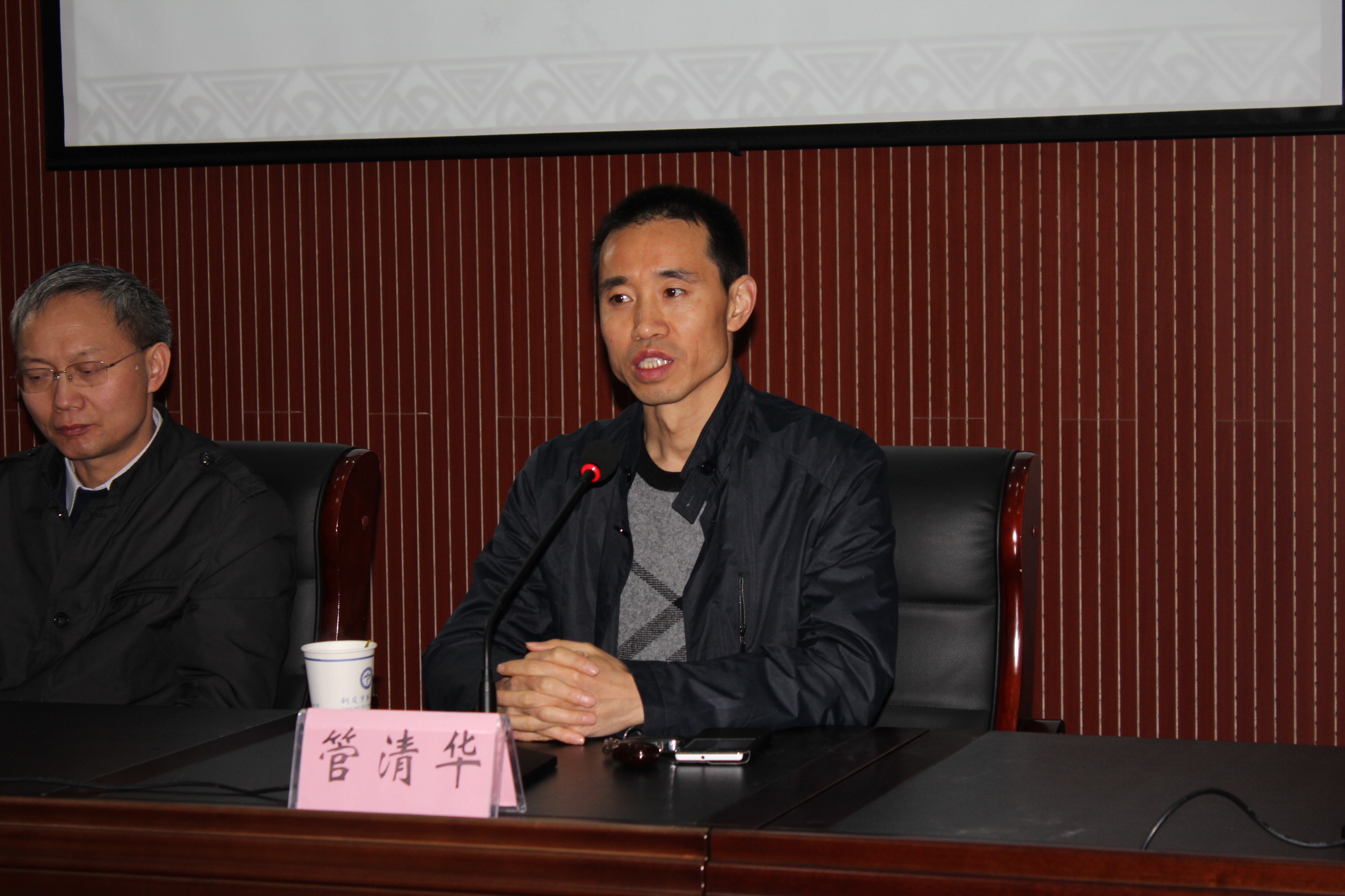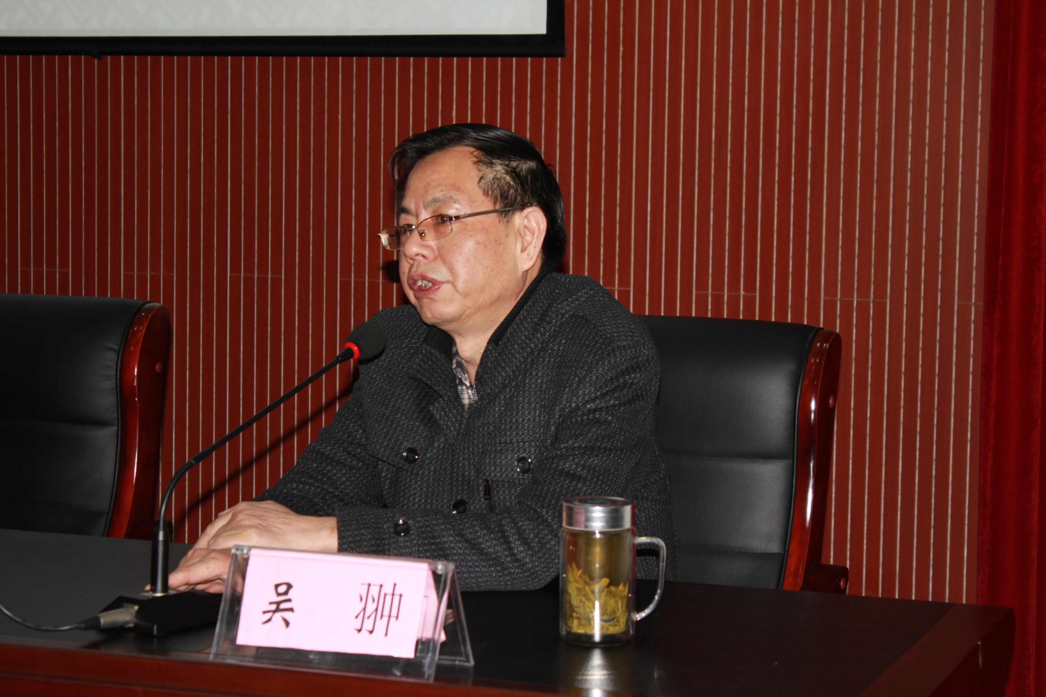 校党总支副书记吴翀向来宾简要介绍了我校五十年发展历程和办学特色。