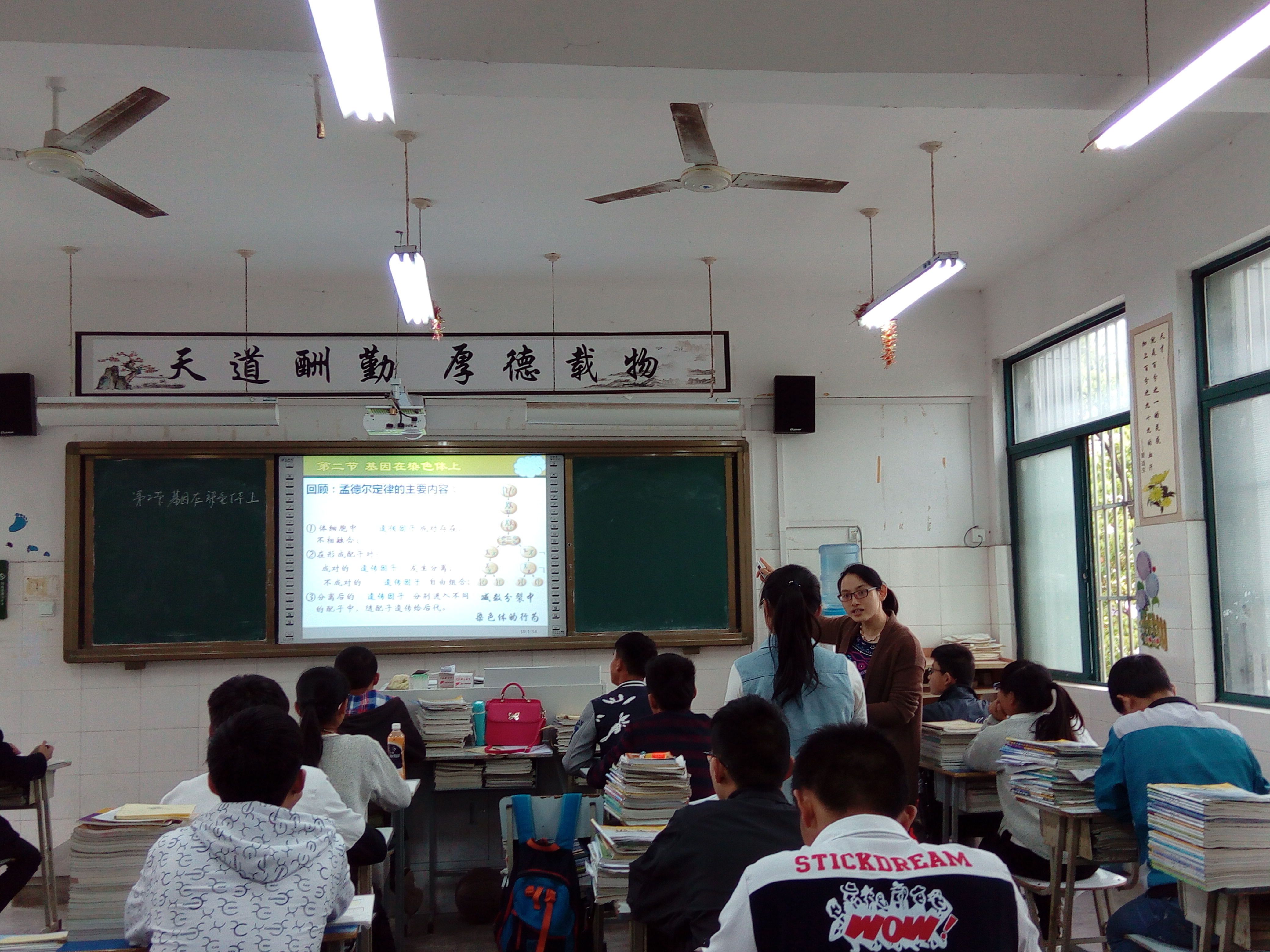 4月26日上午,市义安区第二中学505班教室和404班教室的生物课堂与平时很不相同,不仅是因为两个班的课堂里多了一批前来听课的老师,还有404班的生物教师也不是同学们熟悉的陈海军老师,而是来自市三中的青年教师朱丽平在和同学们一同探讨生物学知识。