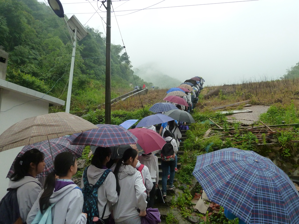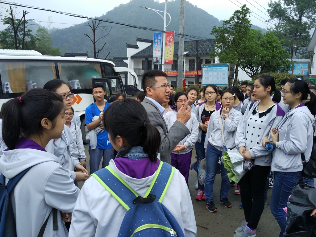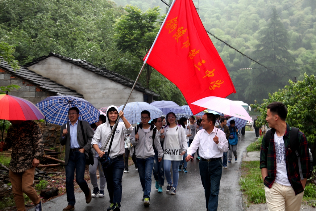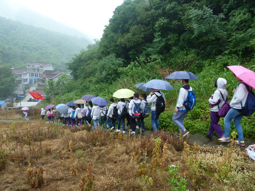 5月22日上午,烟雨朦胧。市三中高一、高二年级60余名学生在校团委书记徐盼、高一年级部长方进的带领下,挥舞着红色校旗,迈着整齐的步伐,一头扎进义安区钟鸣镇泉栏村的怀抱。地理组王俊朝、曹玲玲老师、英语组缪运霖老师全程参与研学活动。