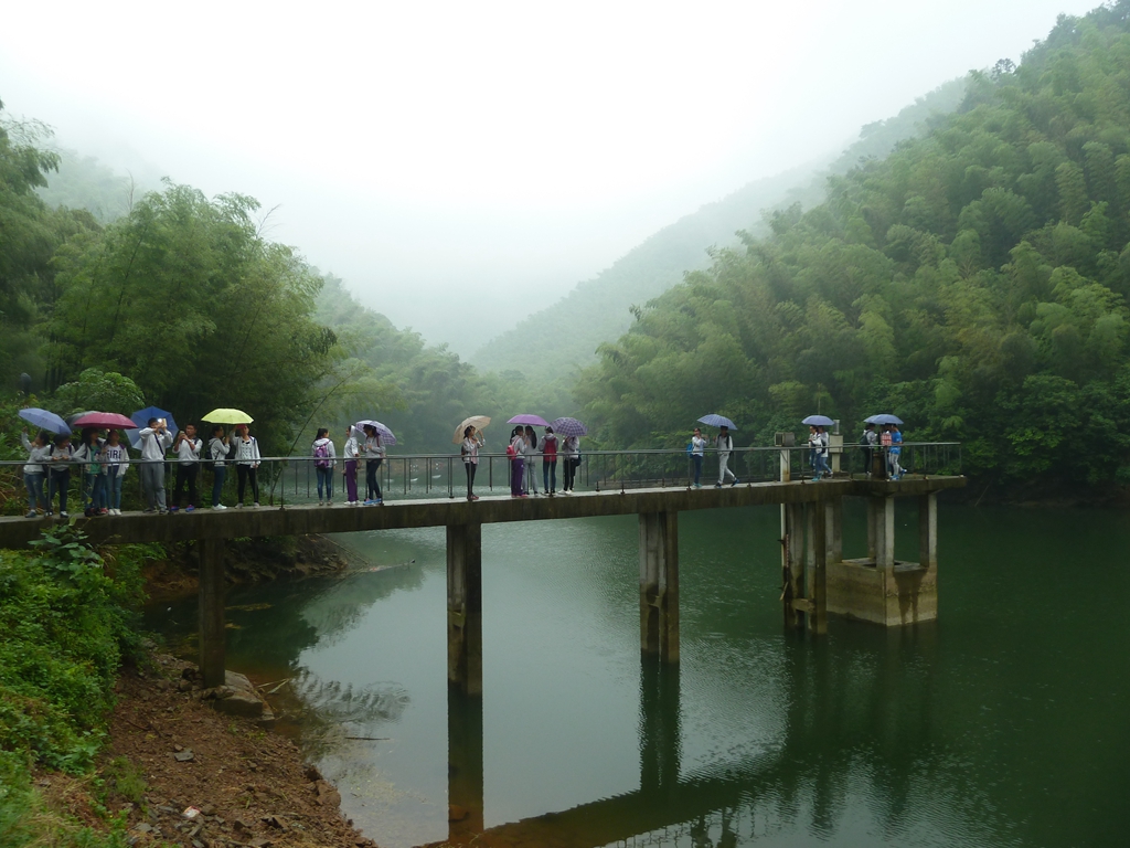 参与水质调查也是本次课外实践的重要内容之一。三中师生沿着山区小路,拾级而上,兴致勃勃地前住其林水库——当地主要饮用水源地(50年前军民共建,由雨水、山泉水和地下水汇聚而成)。只见库区四周山林茂密,青翠欲滴,水库清澈见底,山、林、水、雾、影融为一体,犹如仙境。通过村支书讲解,大家对水库的修建历史、功能、水位变迁、使用原理和水质变化有了全面而深入的了解。