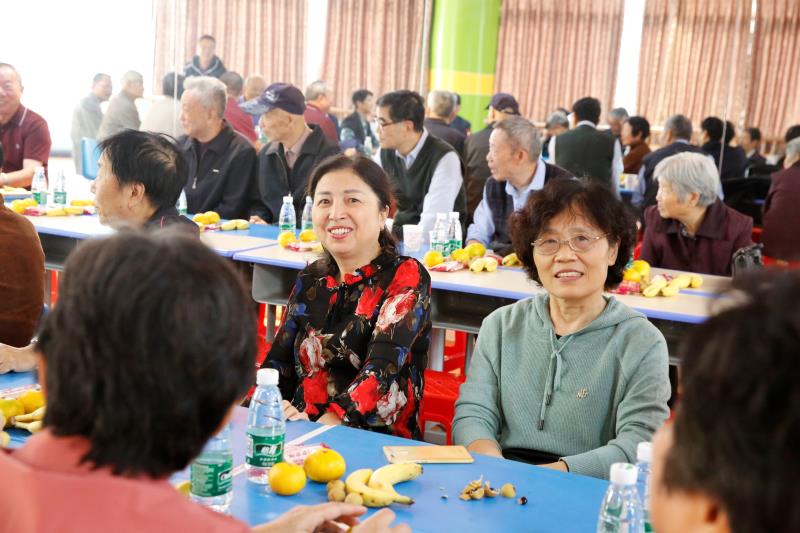 座谈会气氛融洽,老教师们回忆了许多温馨感人的往事,体育馆内充满了欢声笑语。