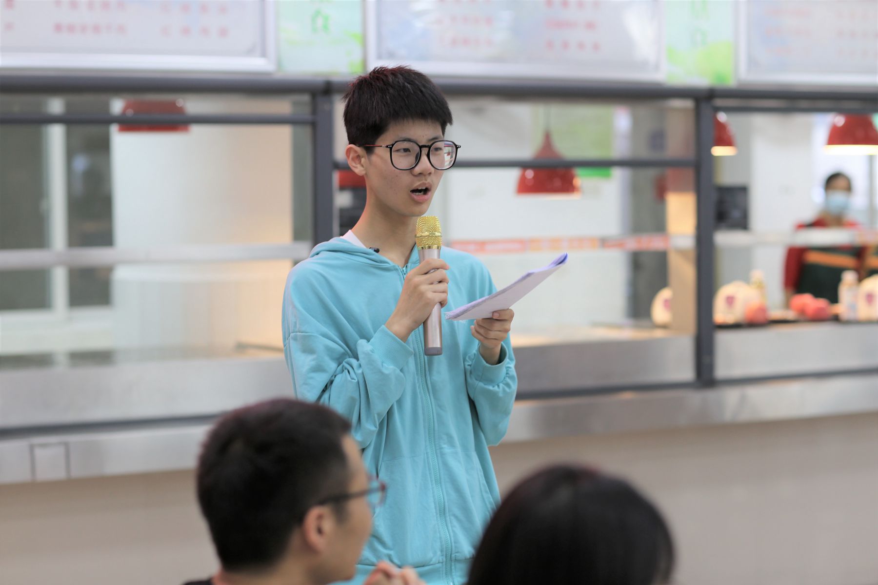 首先由高三住宿生代表潘馨悦同学发言,她表示在三中住校的三年感受到了家的温暖,留下了很多美好的回忆,对各位老师的付出表示了最真心诚挚的感谢。在最后的一个月,是为自己的理想充能续航的一个月,她给各位高三考生提出了几个小建议,并预祝全体高三同学们六月乘风扶摇起,直斩长鲸气吞虹!