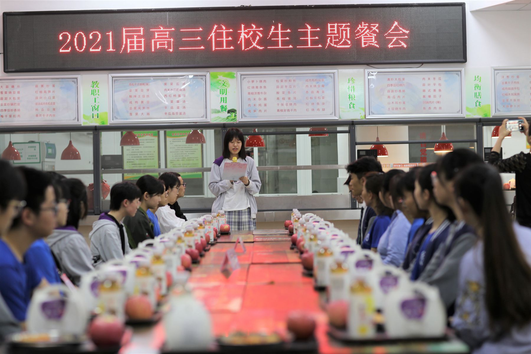 随后,校党委副书记叶叶给大家送上了三句祝福:“有幸能得同行人”“星光不负追梦人”“功夫不负有心人”。叶书记用最朴实却也最动人的语言,给大家解释餐盘里美食的寓意,给高三考生加油打气,祝愿他们“大鹏一日同风起,扶摇直上九万里。”