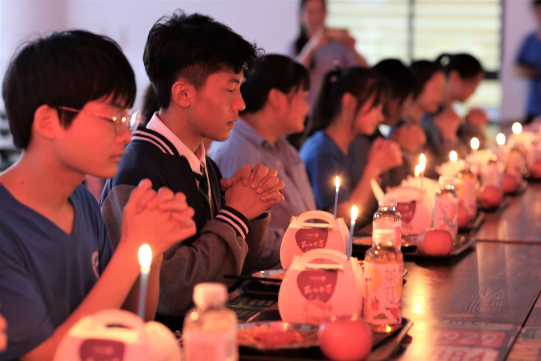 最后,在场的每一个人点燃手中的蜡烛,静静许下心愿,吹灭蜡烛开始用餐。餐会上各位同学和老师们畅谈人生与理想,餐会在一片欢声笑语中落下帷幕。十年磨剑放光芒,笔尖生辉多力量,相信我校高三考生定能乘风破浪会有时,金榜题名定辉煌!