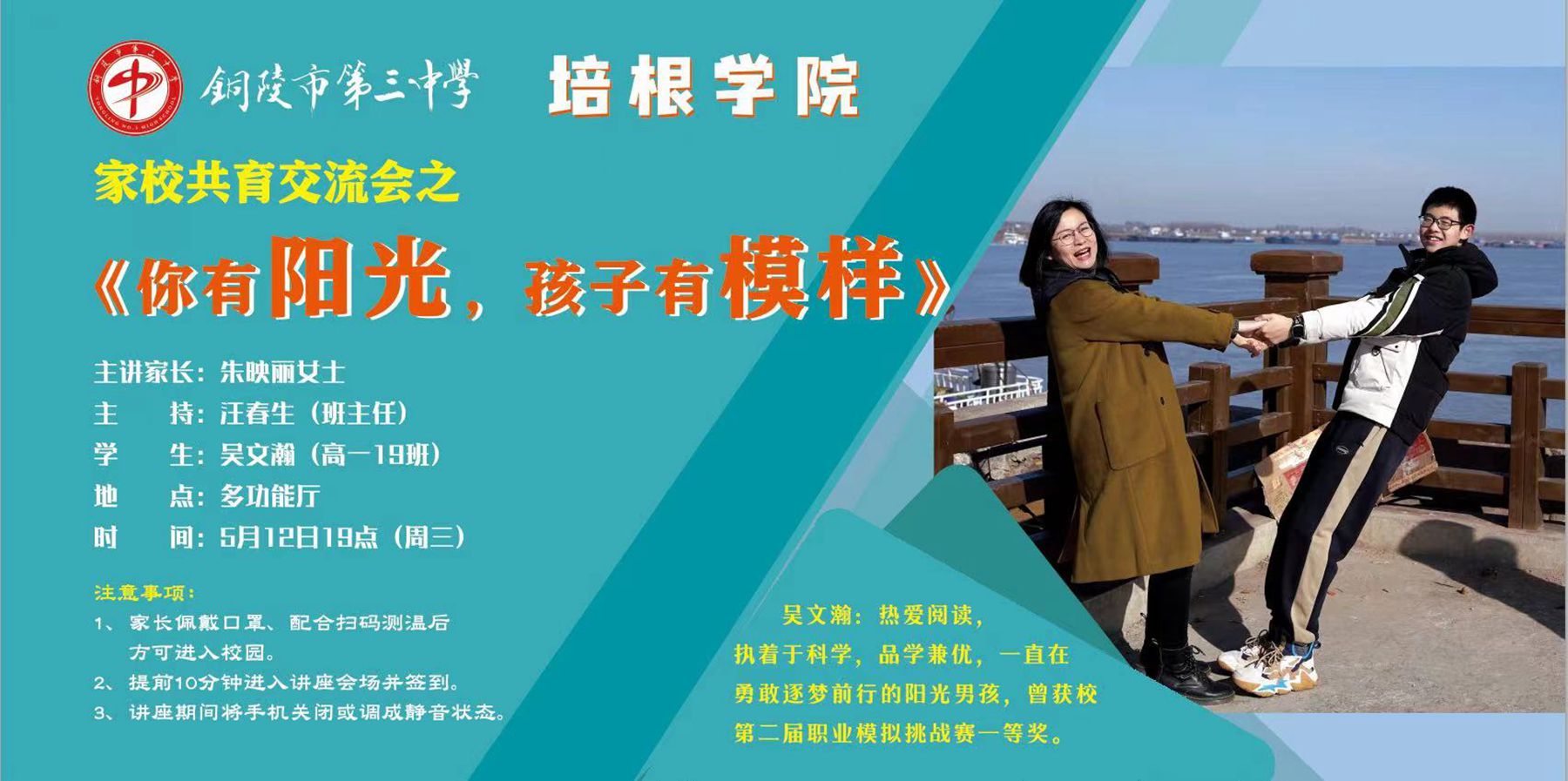 以上是我陪伴孩子成长的几段经历,在这里说给大家听,谈不上分享经验,只是一段心灵的交流。感谢三中的领导和老师给了我们这样一个交流的平台,祝老师和孩子们工作学习顺利,祝各位身体健康、家庭幸福,愿我们的陪伴能让孩子们都考上自己理想中的学校,早日达成目标!