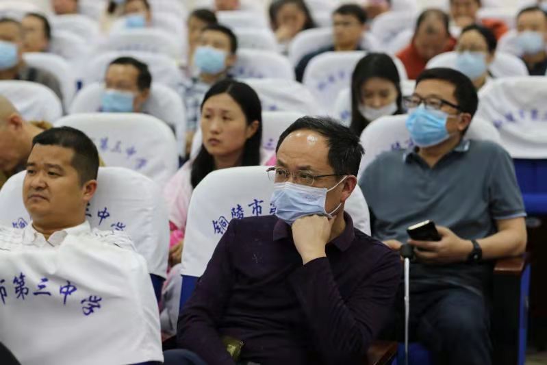 5月26日下午,铜陵市第三中学在校多功能厅召开了全校党员大会、全校教职工大会。会议深入学习了习近平总书记致厦门大学建校100周年贺信精神、新修订的《中华人民共和国教育法》,布置了2021年高考组考防疫及安全工作、诚信考试教育工作。会议由校党委副书记叶叶主持。