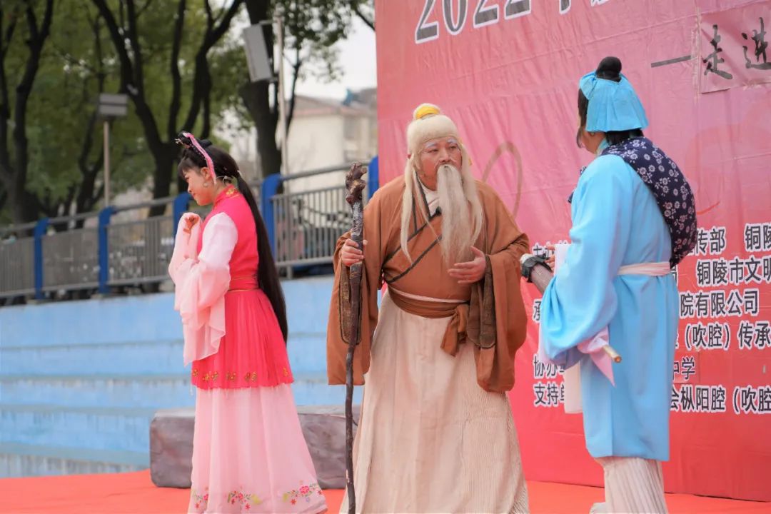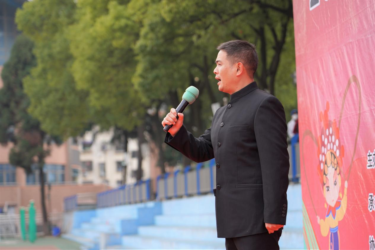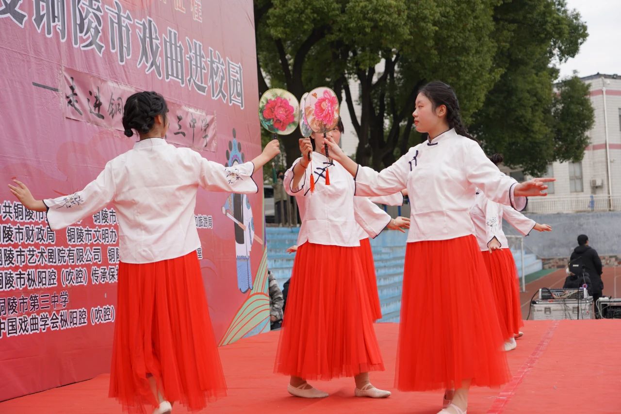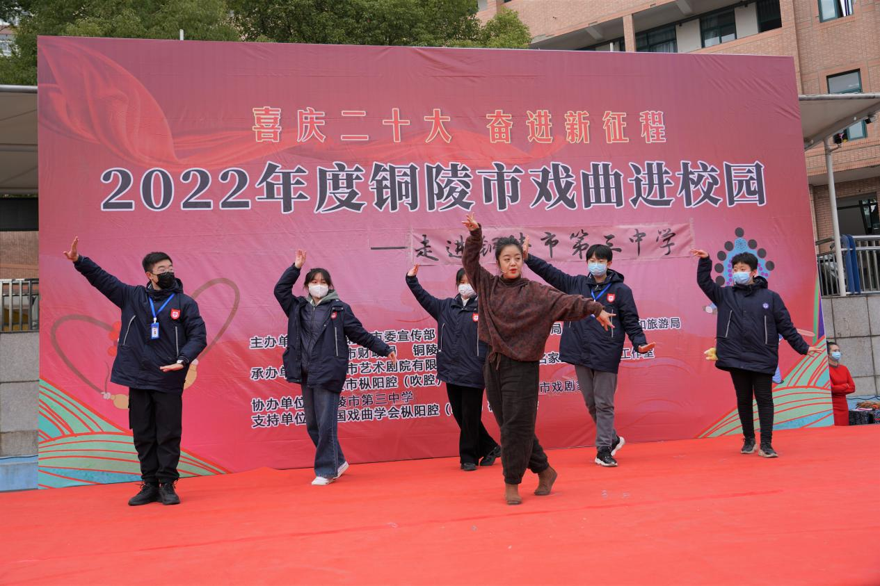 戏曲是中华文化的瑰宝,传承戏曲艺术关键在人,一代代戏曲人执着坚守、口传心授,创造了璀璨的中华戏曲文化,将这门古老的艺术薪火相传、源远流长。同学们,让我们一起弘扬中华优秀传统文化、传承戏曲艺术、创新校园文化、打造特色教育,书写铜陵文化教育事业的新篇章。