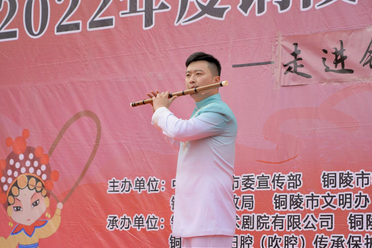 唐建峰老师带来极具本土特色的枞阳腔(吹腔)《水淹七军》。枞阳腔于清初兴起于枞阳县,因用笛子伴奏,又名吹腔,它曾是徽班和徽戏所唱的主腔之一,迄今有近300年的历史。传承和保护枞阳腔,延续安徽古代戏曲声腔的一脉烟火,我们义不容辞。