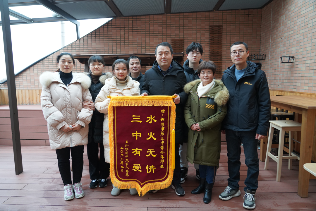 王珍珍在感谢信中写道:“这犹如冬日里最灿烂的一缕阳光,给予光明与温暖,照亮了我这个三中学子的心怀,那如波涛汹涌般的爱的暖流久久地在我们内心深处涤荡。