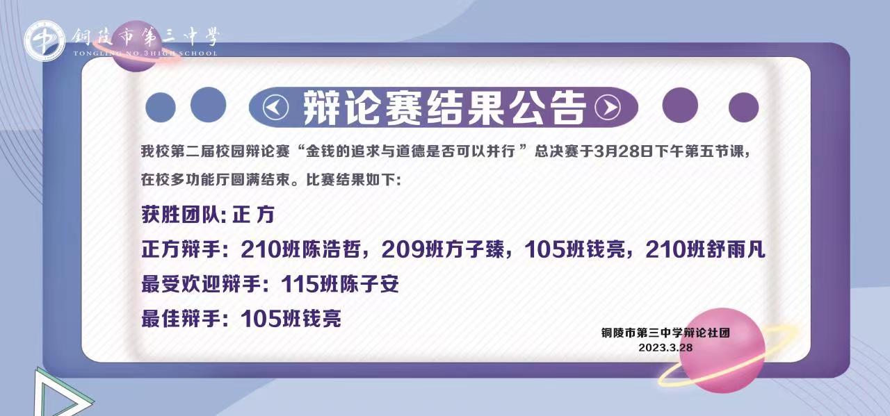 本次辩论赛不仅丰富了校园文化生活,展现了三中五育并举的优秀成果,更训练了学生理性、客观的思维方式,以及严谨认真的演讲态度,大量的辩论手稿是辩手们台下苦功的明证,是指导教师辛勤培育所浇灌出来的鲜花。愿少年们昂扬青春,锐意争锋!