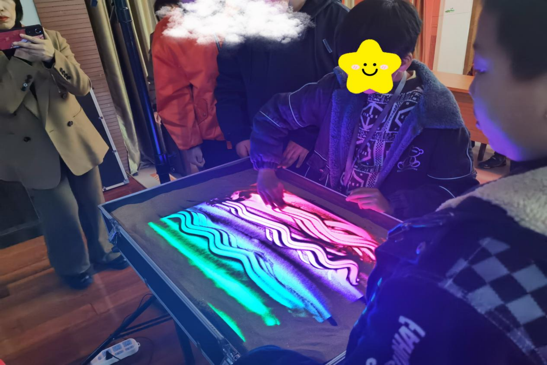 梁波老师首先为孩子带来了精彩的沙画艺术展示。可涂可变化的动态沙画,瞬间在同学们眼前变成了一支神奇的画笔,翻手为云覆手为雨,拈指花开垂手花落,勾勒出一幅幅美妙的作品,描摹出一个个生动的图景和故事:白天鹅、水波浪、丰收门……孩子们也纷纷上台亲手体验,握一把沙,轻轻撒、漫漫漏,沙子落到沙画台,笑容绽放在脸上。