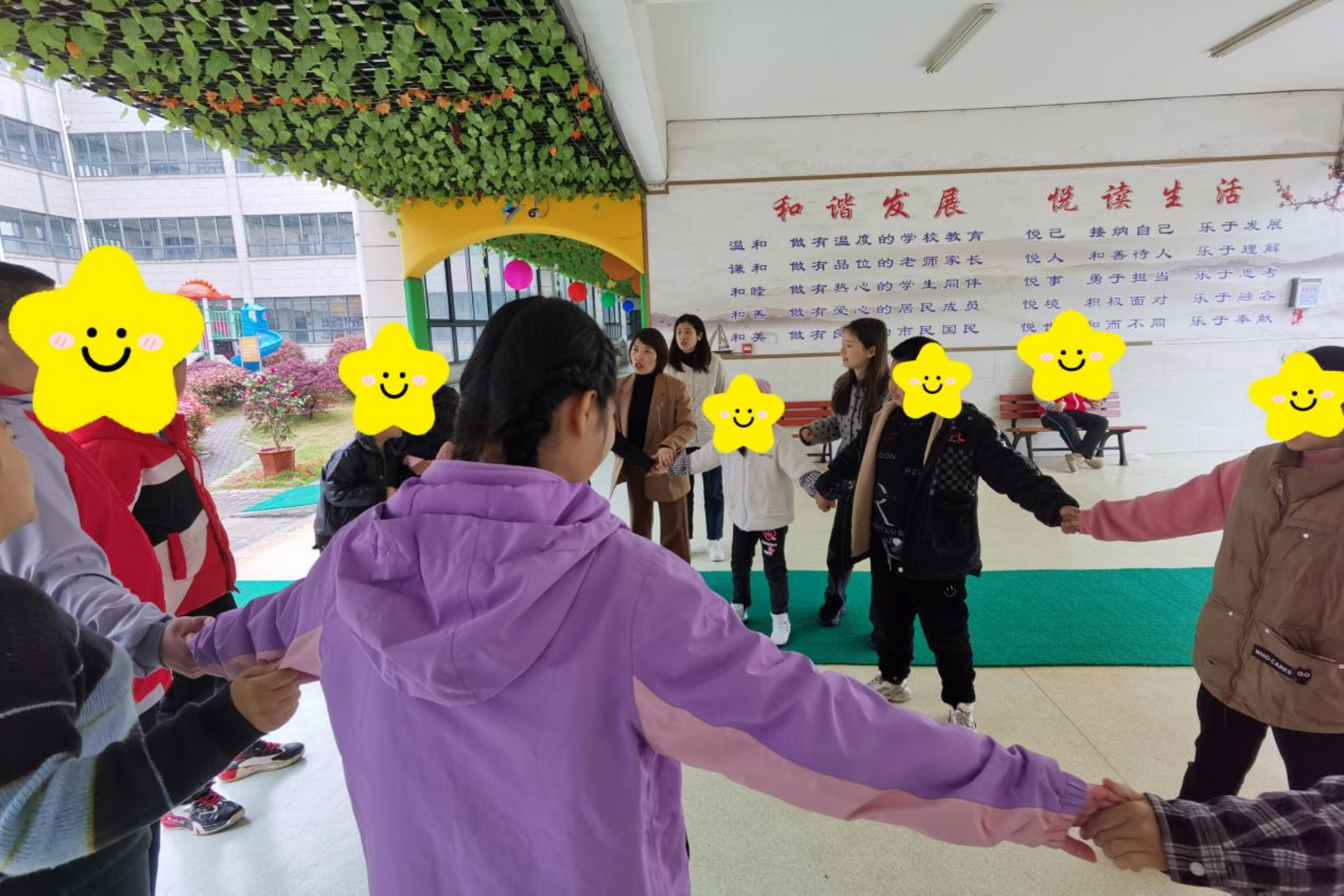 高雯老师、谭敏捷老师带领孩子们进行了简单的团队小游戏,大家手拉手,心连得更紧了。