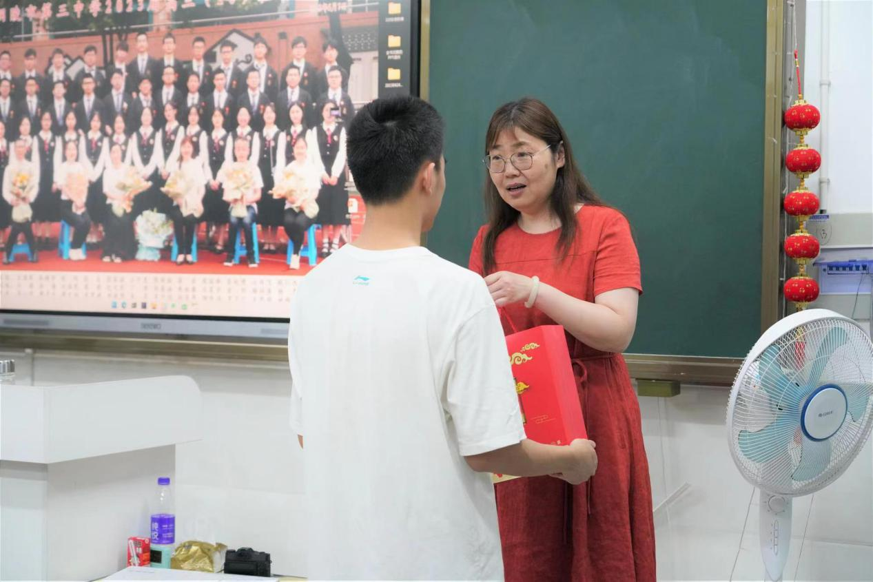 在晚自习的课堂上,班主任们为每一位学生送上了高考的祝福和礼物。老师们殷殷嘱托,柔肠千转;同学们依依不舍,泪光闪闪。三年相伴,时光匆匆,同学们有收获、有成长、有喜悦,青春在此处留下亮丽的一笔。